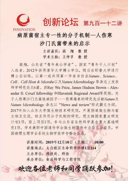地点:太白校区生命科学西楼1层114