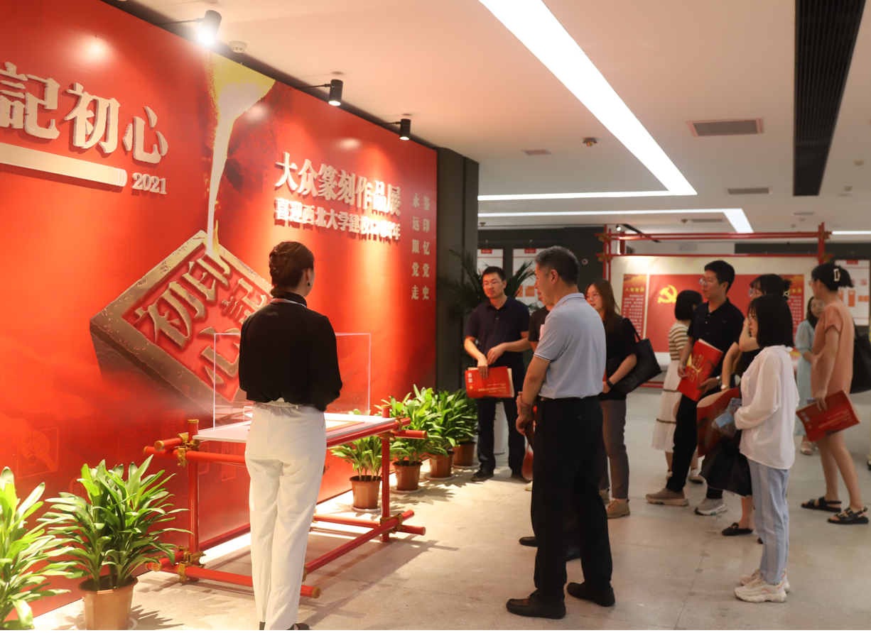 为进一步扎实开展党史学习教育,大力弘扬中华优秀传统文化,用党史题材篆刻艺术作品教育引导学院师生,9月13日下午,我院党委组织师生党员代表参观“印记初心-大众篆刻作品展”。