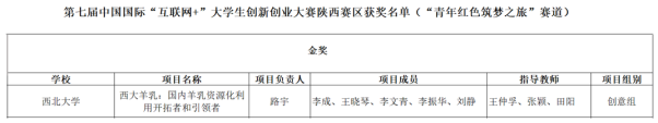 近日,第七届中国国际“互联网+”大学生创新创业大赛省级复赛在西安交通大学成功举行。我院项目“西大羊乳——国内羊乳资源化利用开拓者和引领者”荣获“青年红色筑梦之旅赛道”陕西赛区金奖,为学校和学院争得了荣誉。
