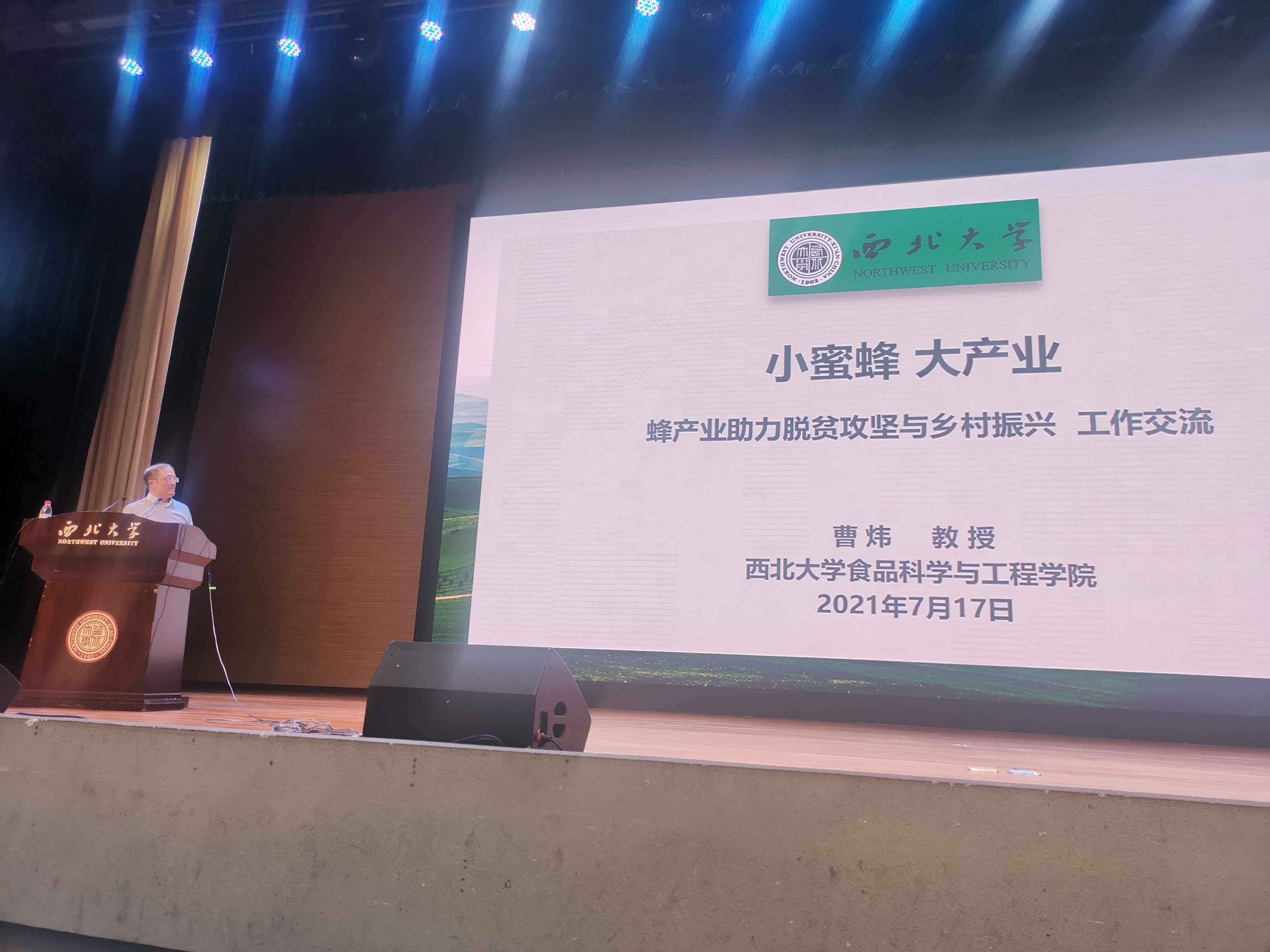 在7月16日下午学校召开的脱贫攻坚总结表彰大会上,我院获先进集体,岳田利教授、曹炜教授获西北大学脱贫攻坚先进个人荣誉称号。在随后的乡村振兴实务论坛上,曹炜教授作了《小蜜蜂 大产业 蜂产业助力脱贫攻坚与乡村振兴》的主题报告。