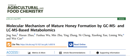 近日,必赢3003的网址曹炜教授团队在食品科学领域国际著名学术期刊《Journal of Agricultural and Food Chemistry》发表了题为《Molecular Mechanism of Mature Honey Formation by GC-MS- and LC-MS-Based Metabolomics》的学术论文,该研究通过代谢组学方法揭示了不同酿造时间的蜂蜜差异性代谢物的变化规律,实现了成熟蜂蜜和未成熟蜂蜜的精准“诊断”。
