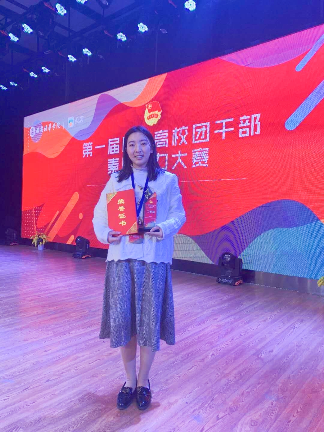 11月1日,由共青团陕西省委、中共陕西省委教育工委主办的第一届陕西高校团干部素质能力大赛(学生团干组)在培华学院举行。本次比赛共有来自全省67所高校的107位学生团干部参赛,经过激烈角逐,我院2018级团支部书记王浩坤荣获二等奖。