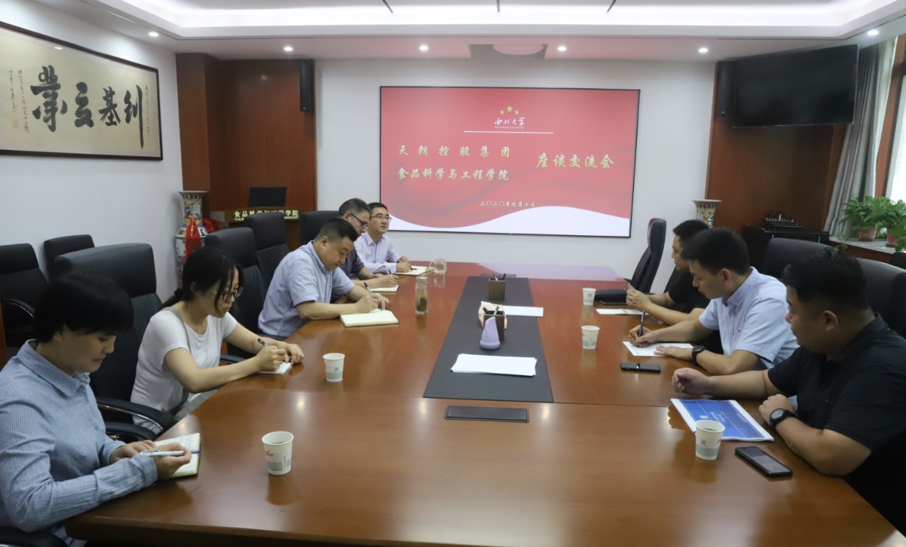 9月10日上午,天朗控股集团朱学亮、宋文漪、杜海平三位部门负责人一行来我院洽谈合作事宜,岳田利院长、刘晓忠书记、骆艳娥教授、宋微副教授、王媛副教授出席了座谈会,会议由赵会武副院长主持。