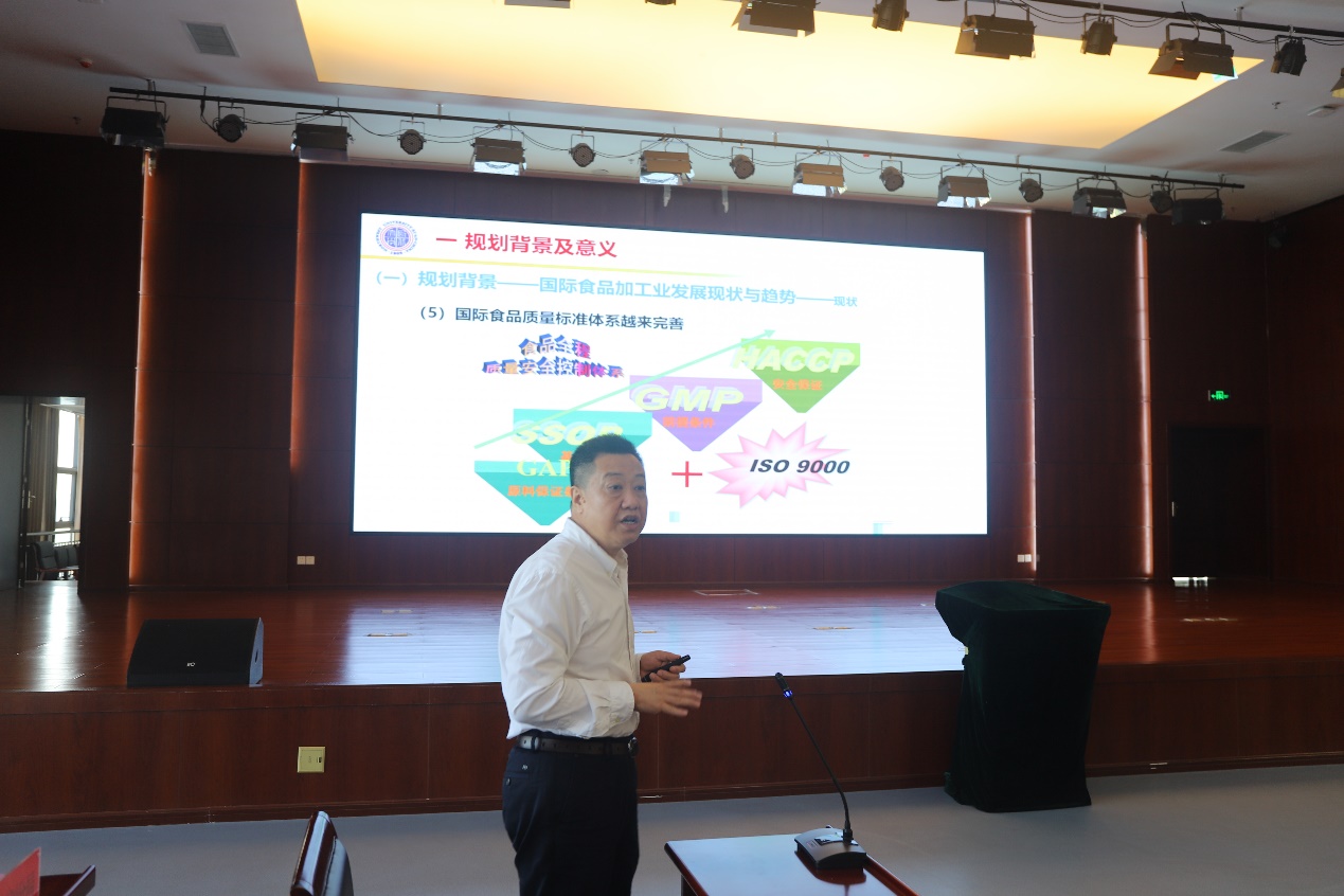 首先,由岳田利和经开区领导为渭南食品产业技术研究创新平台揭牌。接下来,由岳田利代表编制团队汇报编制情况。岳田利的汇报分为六个部分:一是规划背景及意义;二是现状分析;三是规划依据、期限和范围;四是总体思路、原则和目标;五是重点产业体系、产业布局和配套体系;六是重大工程;七是保障措施。全面、系统、专业性地为地方经济高质量发展把脉问诊。最后,与会专家对规划进行了评审。