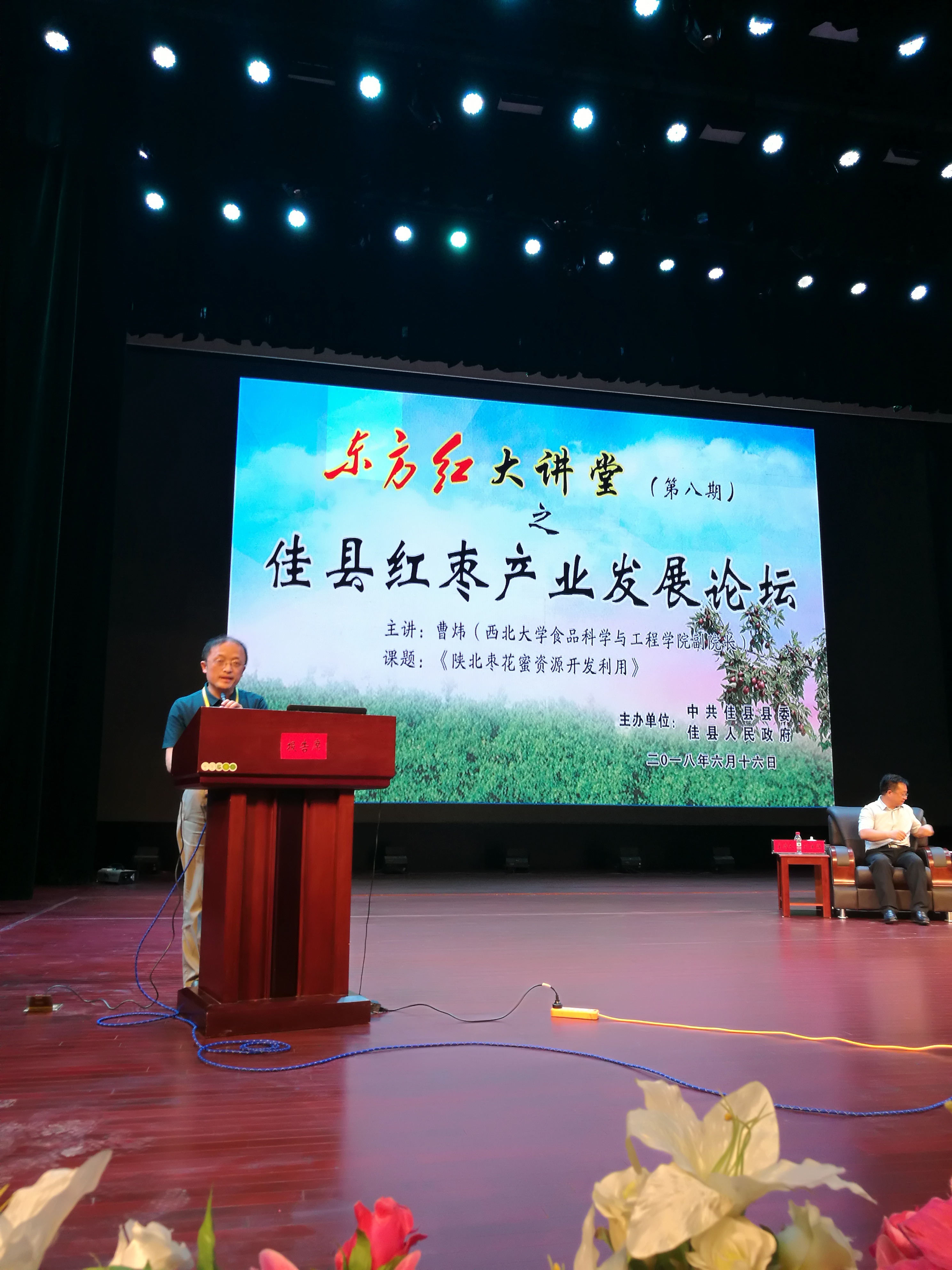 在红枣产业发展论坛环节,我院副院长曹炜教授做了有关“陕北枣花蜜资源开发利用”的专题报告,从陕北蜂业现状、佳县发展蜂产业的优势、枣花蜜的生物功能和营养价值、枣花蜜的市场前景等方面分析了佳县发展养蜂产业的可行性,为其红枣产业的发展提供了一条新的发展路径。
