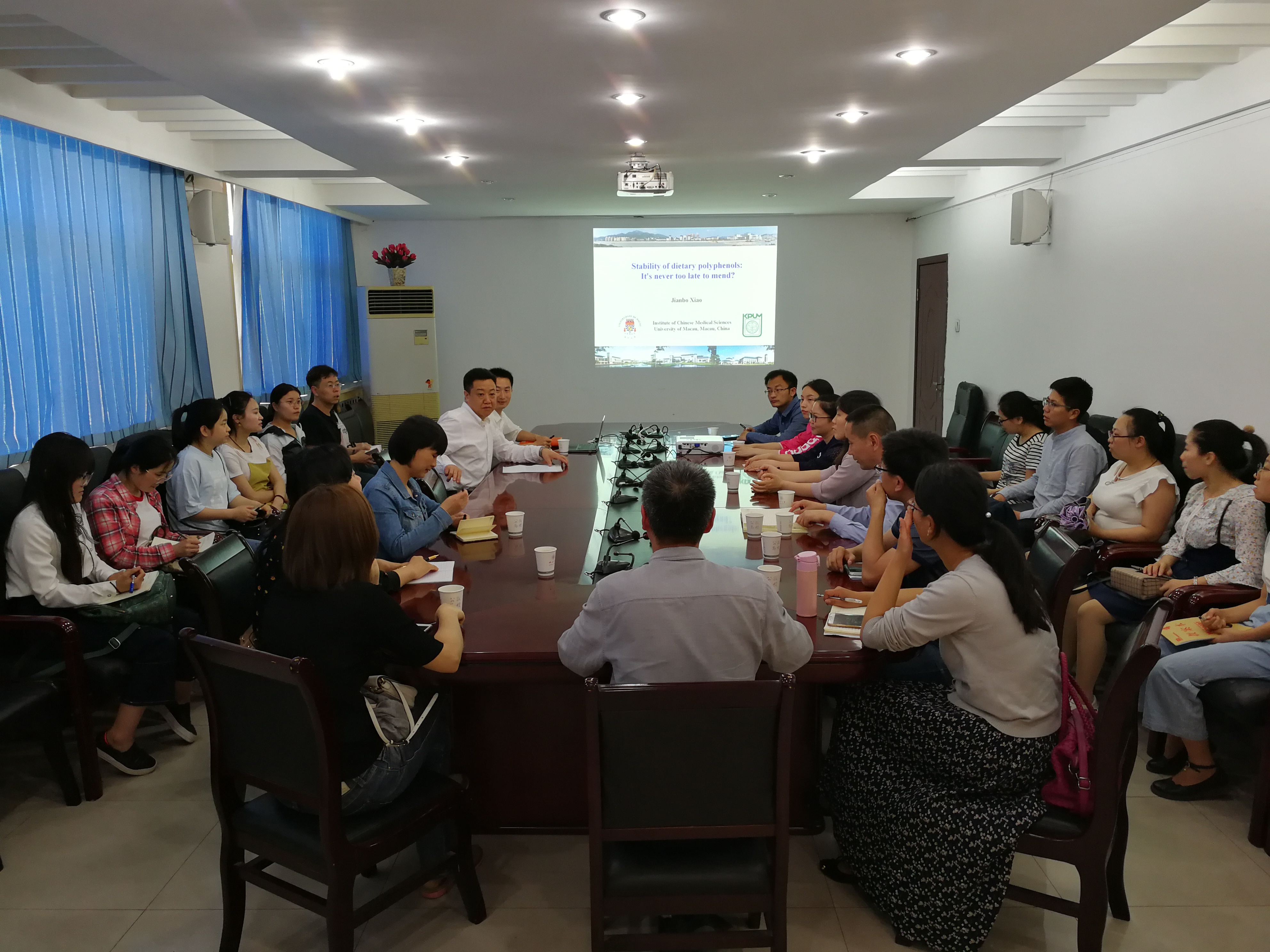 5月3日下午,澳门大学萧建波教授应邀来我院,作题为《Stability of dietary polyphenols :It’s never too late to mend》的学术报告,该报告也是西北大学创新论坛第294讲,我院全体教师和部分研究生参加。报告会由岳田利院长主持。