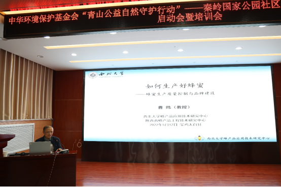 培训会上,我院曹炜教授从蜂蜜生产质量控制与品牌建设的角度系统讲解了秦岭中蜂蜂蜜72道标准化生产技术规范,坚定了秦岭中蜂产业相关企业、合作社、农户做好中华蜂养殖、当好秦岭生态卫士的决心和信心。西北大学蜂产品应用技术研究中心始终致力于中蜂高效养殖、产品生产和品质提升等关键技术与产业化研究,服务地方经济建设,为我省中蜂产业助力乡村振兴贡献一份力量。