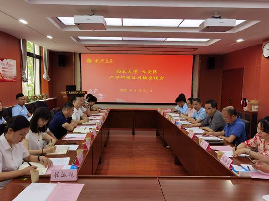 6月21日上午,长安区多部门及相关企业来我院开展产学研项目对接活动。长安区协调办、投资商务局、农业农村局、长安乡村振兴公司、陕西兴东伟业实业发展有限公司、西安春久农业科技有限公司等企业,与学校科技处和我院进行产学研项目对接。