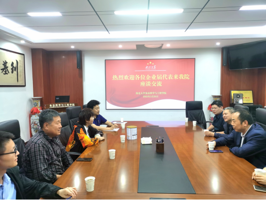 袁亚宏教授对于泳会长及各位企业家的到访表示欢迎,她简要介绍了营养健康食品制造与安全控制团队的研究方向及平台建设情况,介绍了团队在岳田利教授的带领下,在有机产品认证、营养健康食品微生态个性制造、食品标准制定等相关领域的进展。营养健康食品制造与安全控制团队中多名专家作为多年从事国家有机认证专家组成员,参与了洋县等有机示范县的认证工作,推动了陕西有机食品的发展。她表示,愿同来访的各位业界代表加强交流沟通,在有机农产品加工全产业链相关领域推动校企合作,助推食品及大健康产业的发展。