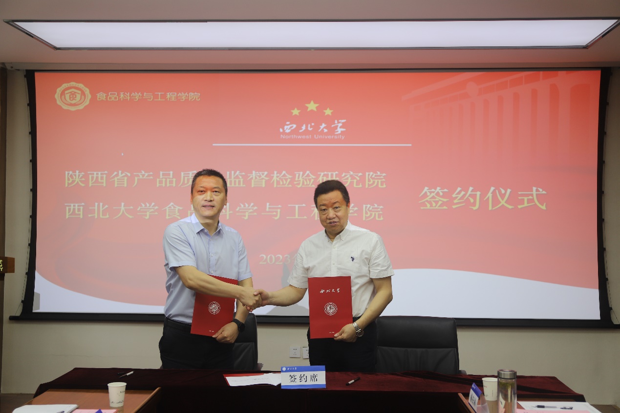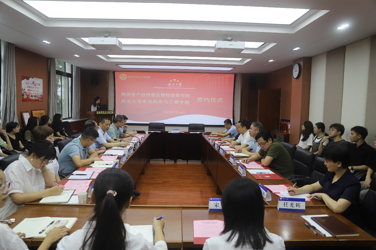 7月14日,必赢3003的网址与陕西省产品质量监督检验研究院战略合作协议签字仪式在西北大学太白校区必赢3003no1线路检测中心院楼举行。出席签字仪式的双方领导和成员有陕西省产品质量监督检验研究院院长段勇、党委书记樊育平、农副食品所主任樊成、绿色建材所主任李治纲、化学所副主任郝媛、人力资源部杨君慧、张力丹,必赢3003no1线路检测中心班子成员、骆艳娥教授、盛庆林教授、宋微副教授等50余名师生代表,签字仪式由马燕副院长主持。