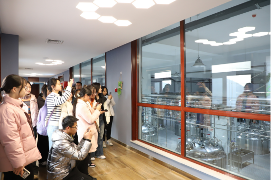 首先在公司讲解员的带领下,实习师生参观了酒厂的选料、发酵、蒸馏、陈酿和打包等各个步骤的生产车间,近距离观摩了蜂蜜酒的制曲、发酵及灌装过程,使师生对酿酒过程有了更直观的了解,将课本的理论知识与实践有机结合,加深了对专业知识的理解和掌握。随后实习师生参观了酒业集团的产品展示厅,了解到酒业集团的历史和发展情况。在参观学习过程中,同学们积极提问,与酒厂技术人员进行了深入的交流,对酿酒的专业知识和技术表现出了浓厚的兴趣,也对酒厂的先进设备和严谨的工作态度表示了赞赏。随后,酒厂负责人热情邀请师生品尝蜂蜜酒。此次参观实习活动,不仅让同学们了解到酿酒的全过程,也对其专业学习和未来的职业发展产生深远影响。