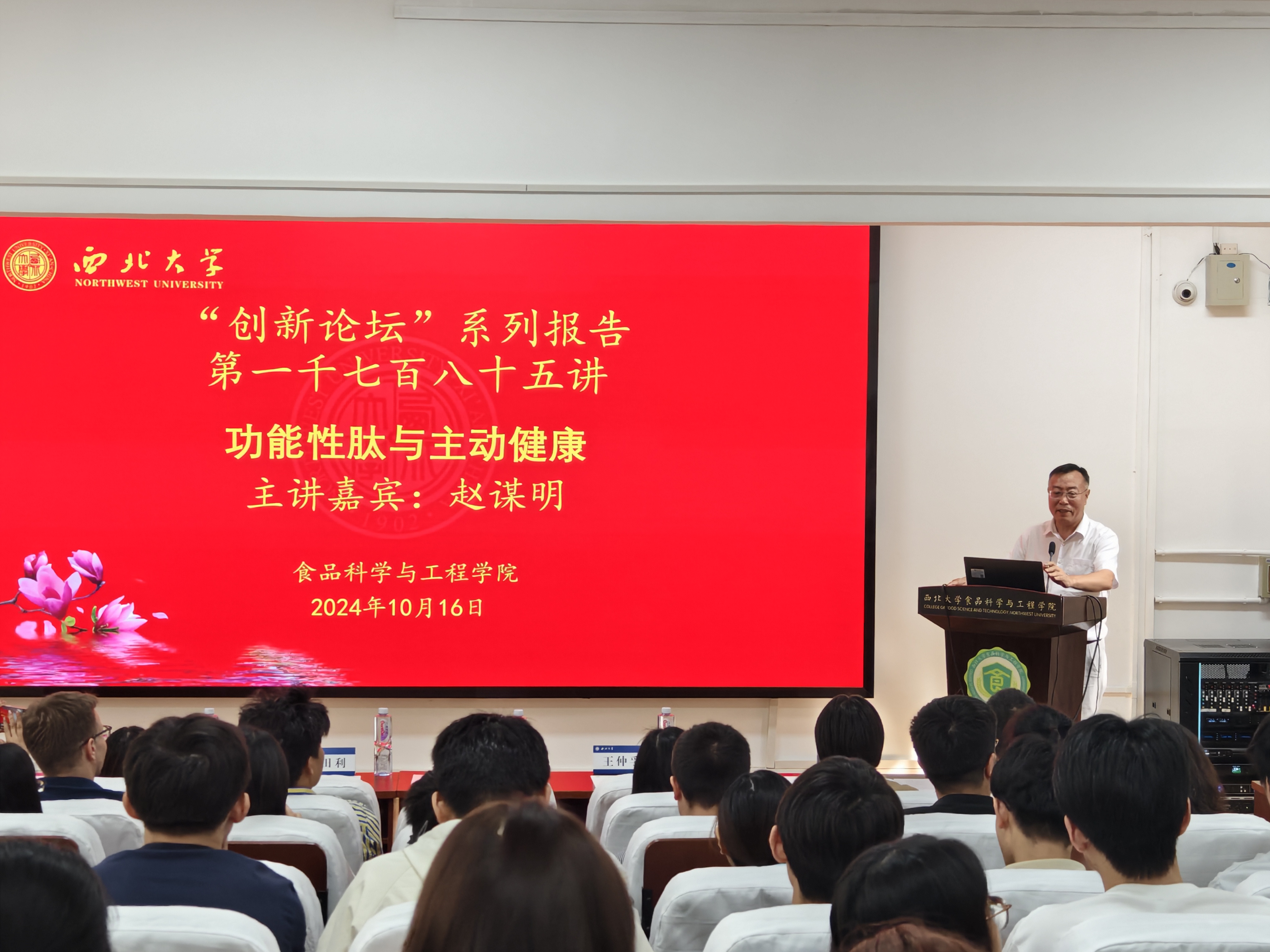 10月16日,由我校科技处、科协主办,必赢3003no1线路检测中心承办的“西北大学创新论坛”第一千七百八十五讲在太白校区举行。华南理工大学赵谋明教授应邀来校为师生做了题为“功能性肽与主动健康”的报告。我校相关专业师生代表参加了报告会。报告会由王仲孚副院长主持。