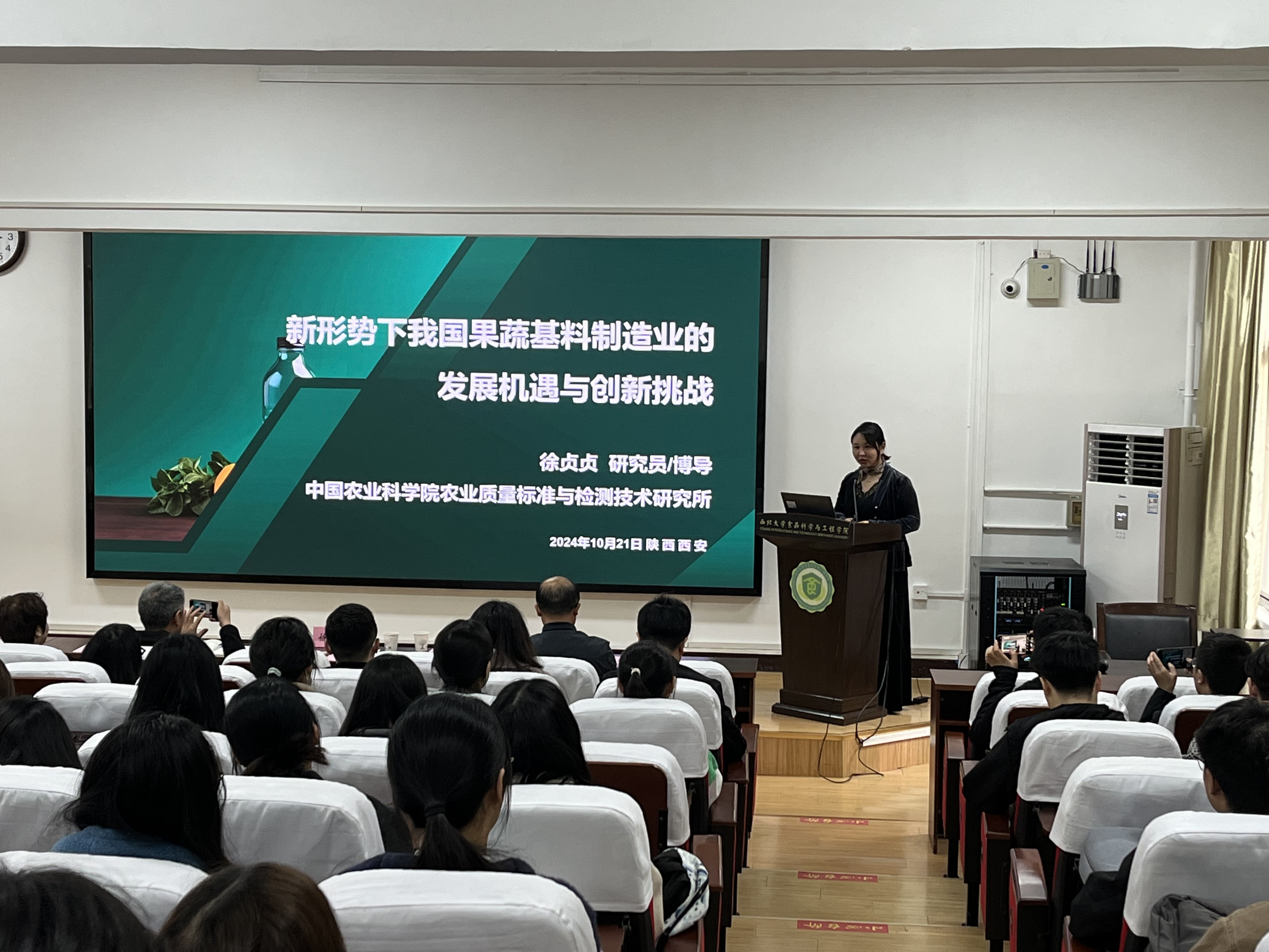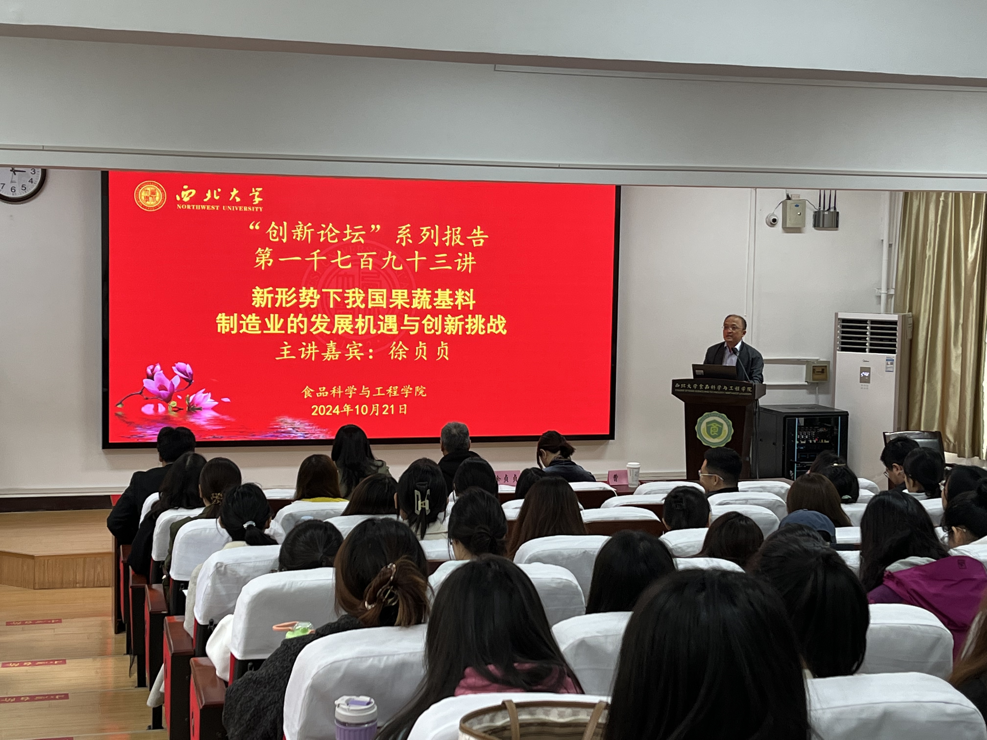 10月21日,由我校科技处、科协主办,必赢3003no1线路检测中心承办的“西北大学创新论坛”第一千七百九十三讲在太白校区举行。徐贞贞研究员应邀来校为师生做了题为“新形势下我国果蔬基料制造业的发展机遇与创新挑战”的报告。我校相关专业师生代表参加了报告会。报告会由曹炜副院长主持。