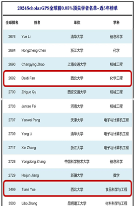 我院岳田利教授、樊君教授入选ScholarGPS “2024年全球前0.05%顶尖学者榜单”