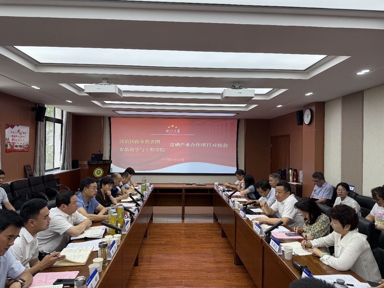 6月13日,安康市汉滨区政协主席蒋平率领区委副书记贺富莉、副区长周本才、农业农村局、经贸局等部门负责人以及龙王泉富硒矿泉水、汉水韵茶叶有限公司、泸康酒业(集团)三家龙头企业负责人组成的政企代表团来访我院,开展富硒产业合作对接座谈。校科技处处长杨涛、国内合作处副处长张艺昆、学院党委书记刘晓忠、院长岳田利及富硒茶研发中心主任袁亚宏教授、盛庆林教授、冯克伟副教授等多位参加了座谈,双方围绕富硒资源的开发利用、产品创新及品牌提升进行了深入探讨,会议由行政副院长马燕主持。