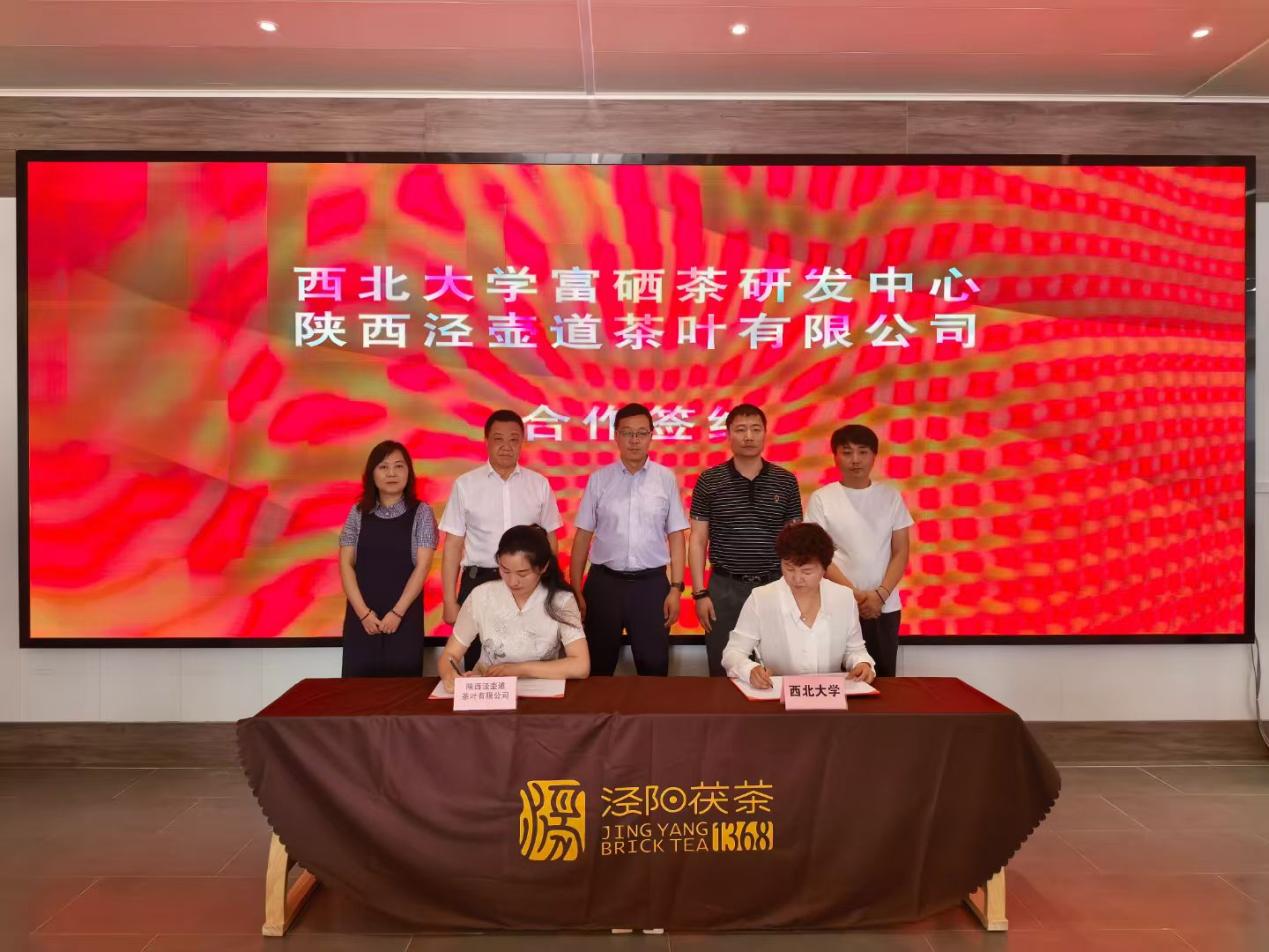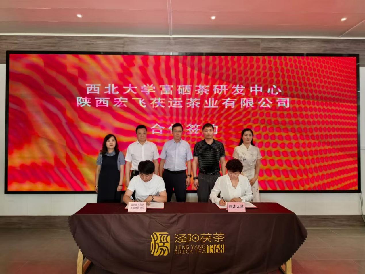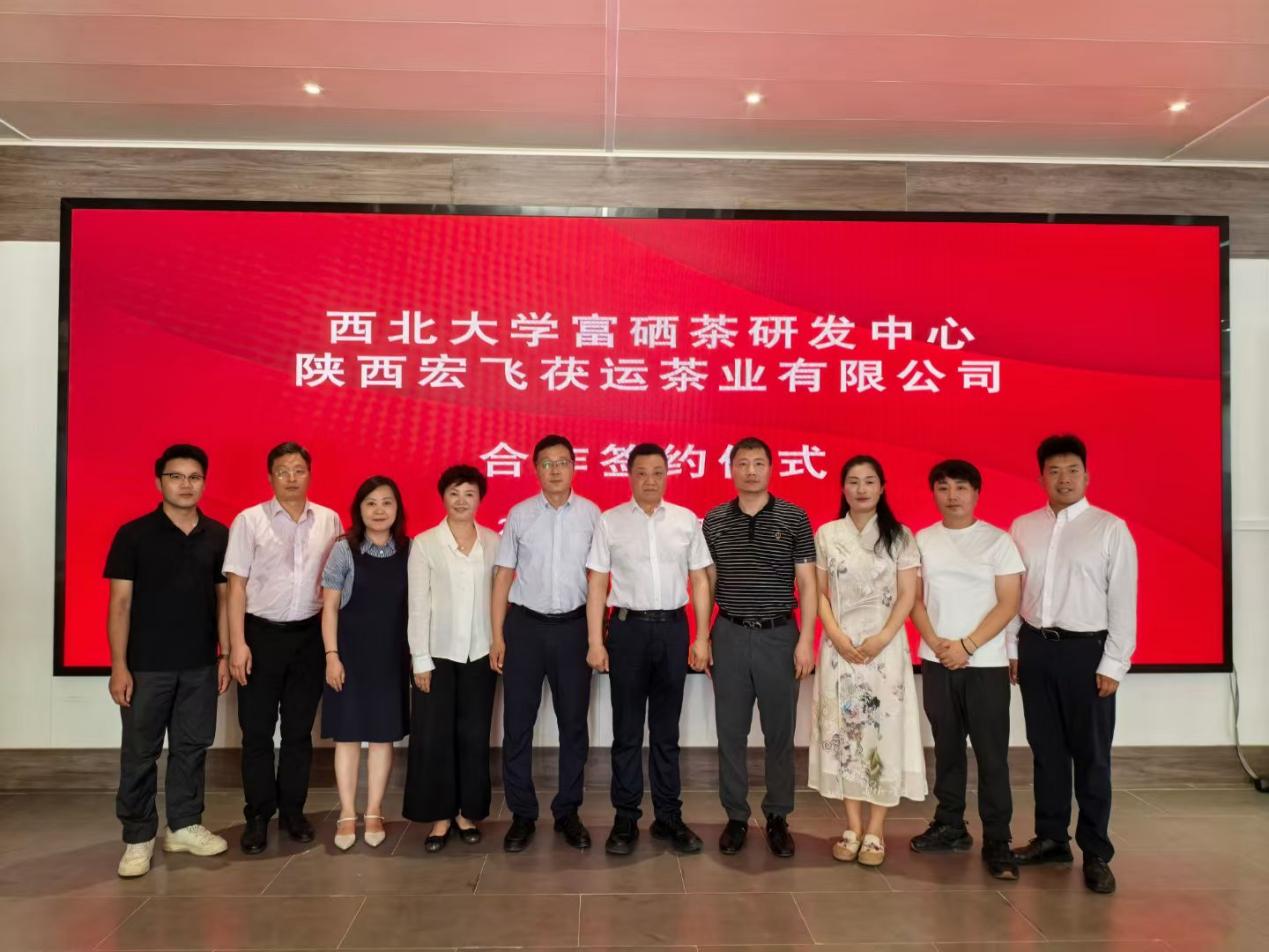 6月13日下午,西北大学富硒茶研发中心与陕西宏飞茯运茶业公司签署了项目合作协议。本次活动旨在响应陕西省政府《陕西省茶产业高质量发展的意见》,推动陕西茯茶产业创新性发展,促进茯茶产业与高等教育有机结合,完善茯茶产业科技生态链,创新开发相关茯茶产品,实现茯茶产业科技成果高效转化。西北大学科技处处长杨涛、食品学院院长岳田利、行政副院长马燕、食品学院、西北大学富硒茶研发中心主任袁亚宏教授、副主任盛庆林教授、副主任冯克伟副教授、学院办公室主任任光辉,陕西宏飞茯运茶业有限公司董事长杨飞、总经理罗亮、陕西泾壶道茶叶有限公司总经理刘敏出席本次活动,签约活动由秦创原茯茶文化创新中心主任党其雷主持。