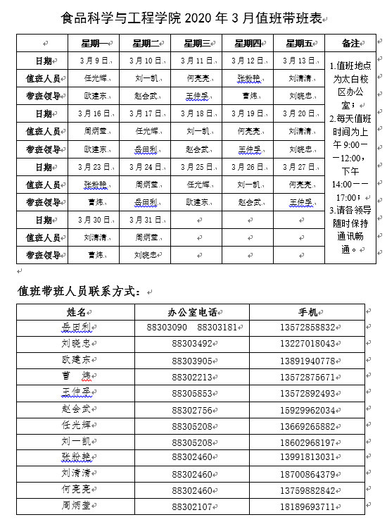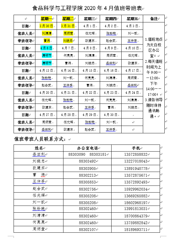 二、疫情防控期间学院各部门工作人员联系方式