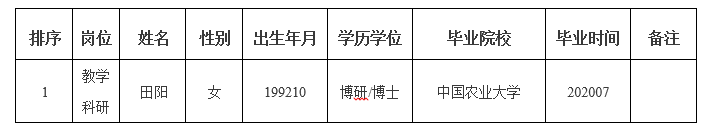 经本人申请、学院资格审查、考核等环节,我院拟确定下列人员来我院工作。本着公平、公开、公正的原则,现将本次选聘人员基本情况公示如下: