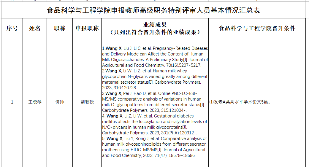 经学院学术委员会2024年5月6日会议、5月9日党政联席会议讨论研究,决定王晓琴通过2024年第一次教师高级职务特别评审资格审查。具体条件见下表。