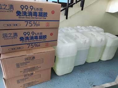 此次捐赠的疫情防控物资为:普通口罩4000个;N95口罩 1000个;凝胶170瓶;4大桶酒精,共计100Kg;4大桶84消毒液,共计100Kg;酒精喷雾器100个;消毒液喷雾器50个。