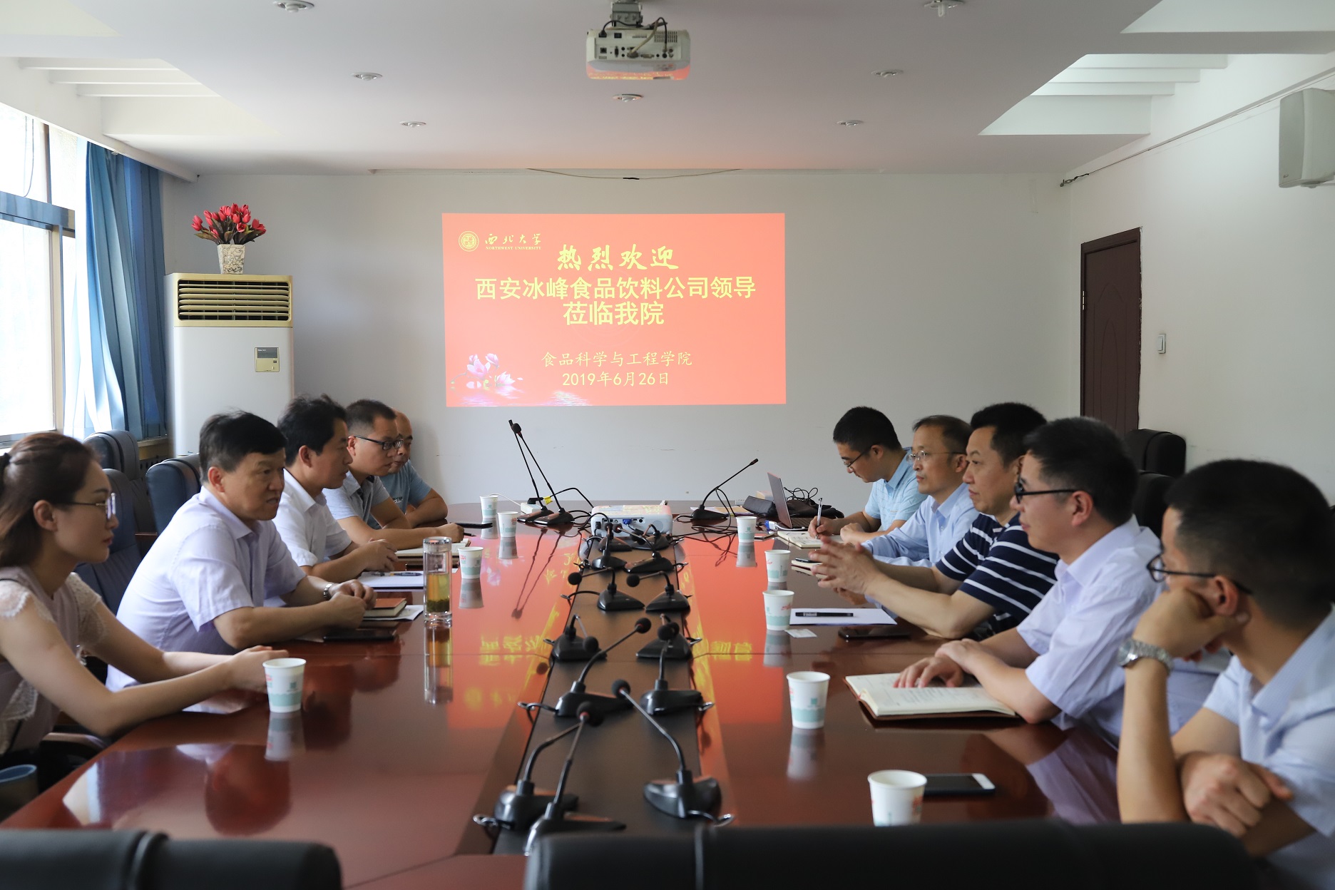 岳田利院长代表学院对陈卫平总经理一行的莅临表示欢迎,并向其介绍了学院发展的历史,以及现有的学科方向及学科平台。同时指出,冰峰饮料作为西安人记忆里“儿时的味道”,可与我院现有的科研力量在产品开发、功能升级等方面开展广泛合作;冰峰方面也可在我院设立奖学金,提供实习场所,利用百年西大声誉,增加知名度,进一步拓宽市场。