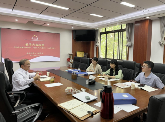 首先3位课程负责老师分别从课程教学内容、课程目标、课程设计思路等方面进行了交流发言,并就课程建设中存在的问题提出了建议。曹炜教授根据课程负责老师的发言,结合每门课程的教学内容、课程难点、教学方法等提出了有针对性的意见和建议,并与老师们展开了深入讨论。《食品机械与设备》《食品工厂设计》《工程制图》三门课是食品科学与工程专业非常重要的工程类课程,建议老师们在授课过程中使用教学模型或模具、重视课后作业的辅导,增加设计类课程作业的难度和适用性,加强教学过程中对学生的辅导和帮助。为了提高工程类课程的教学质量,鼓励青年教师多到食品工厂车间中锻炼,提高实践教学能力。