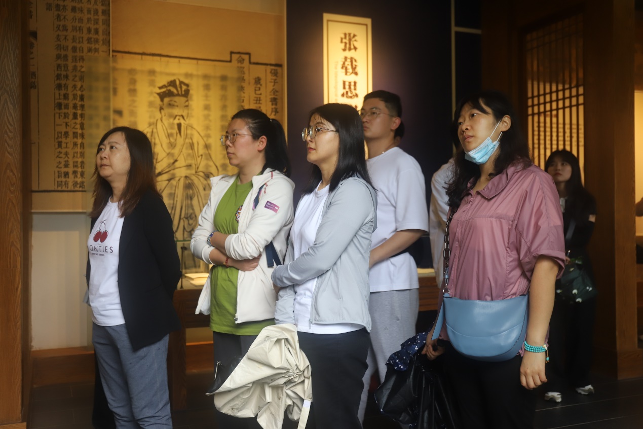 在廉政教育基地张载祠,全体师生党员认真聆听张载关学思想发展的渊源,学习张载廉洁勤政和家规家训的“六有”“十戒”“东铭”“西铭”等内容,感悟张载“为天地立心,为生民立命,为往圣继绝学,为万世开太平的“四为”家国情怀。