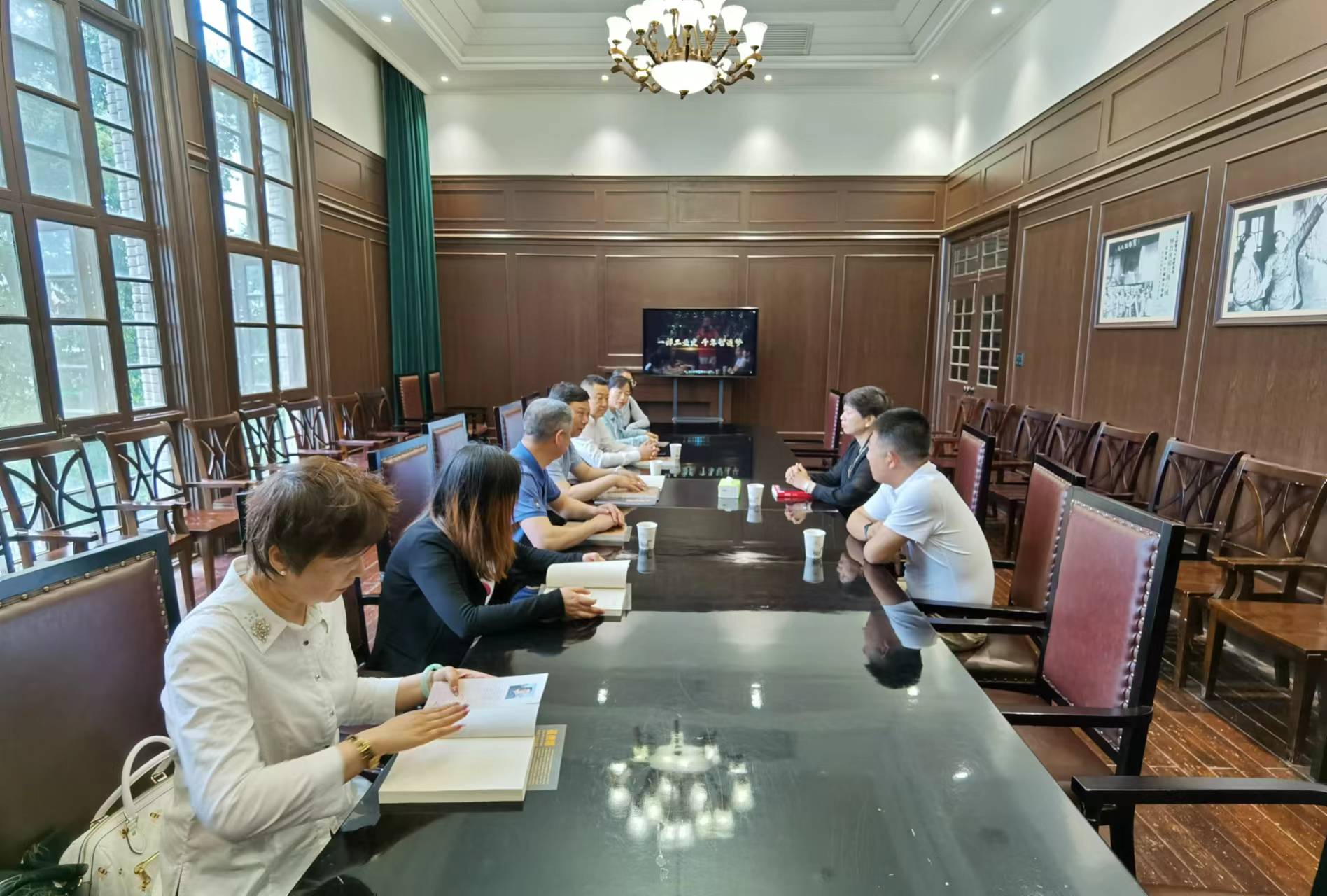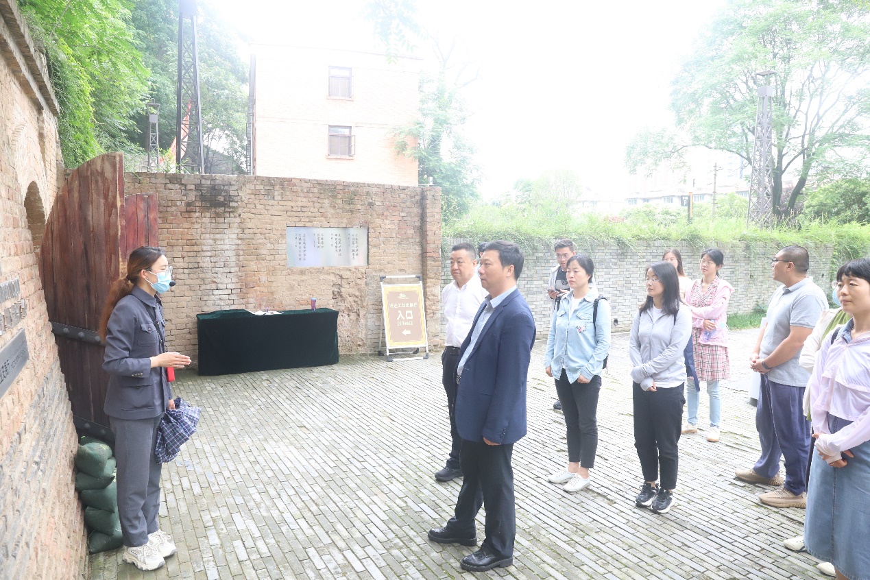 赖绍聪一行来到长乐塬抗战工业遗址公园,在讲解员的带领下参观窑洞工厂、申新纱厂办公楼等历史遗迹,听取荣氏申新纱厂内迁宝鸡、实业救国的珍贵历史事迹,见证民族企业家实业救国的历史过程,重温抗战历史,感悟伟大抗战精神。在随后与遗址公园管委会举行的座谈会上,双方表示,将进一步加强校地合作,发挥学校相关学科优势,加强革命文物保护利用,弘扬革命文化,传承红色基因。