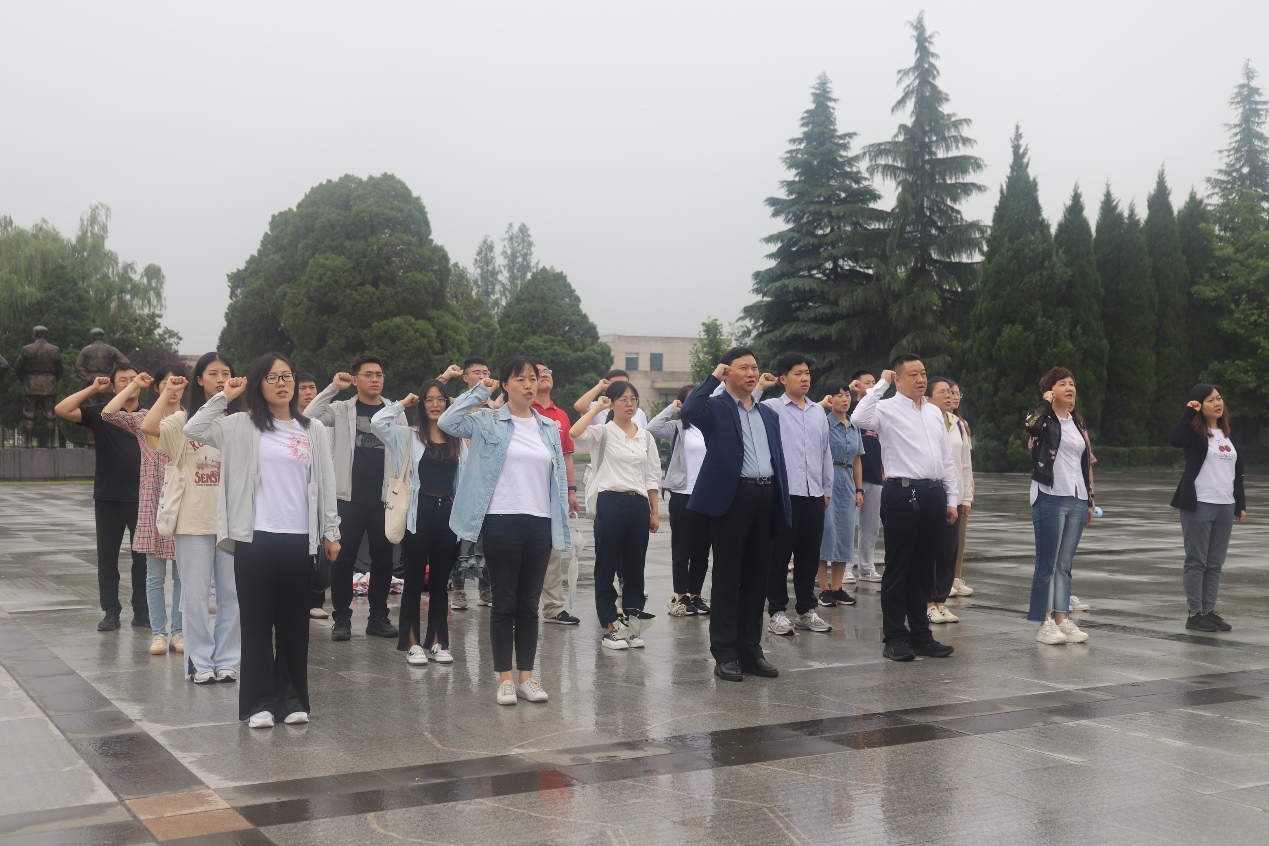 赖绍聪一行在扶眉战役纪念馆缅怀革命先烈,追寻红色记忆。大家认真参观了烈士纪念馆,通过观看历史图片、文字资料和斑驳的烈士遗物,聆听扶眉战役中一个个感人至深的英雄事迹,亲身感受先烈们为革命事业而不惜抛头颅、洒热血的英雄壮举,重温当年革命斗争的光荣历程,接受革命精神洗礼。在烈士墓前全体人员三鞠躬,表达对革命先烈的崇高敬意和无限哀思。赖绍聪现场讲授主题党课。他指出,无数革命先烈不惜牺牲年轻的生命打下红色江山,就是因为他们有着共同的革命理想。新时代的青年要有理想、有追求,明确人生目标,坚定理想信念,树立正确的世界观、人生观、价值观,指引奋斗之路;党员同志要坚定不移用新时代中国特色社会主义思想武装头脑,自觉做共产主义远大理想和中国特色社会主义共同理想的坚定信仰者和忠诚实践者,在新征程上展展现新担当新作为。在庄严肃穆的革命烈士纪念碑前,全体党员面向党旗进行重温入党誓词宣誓。