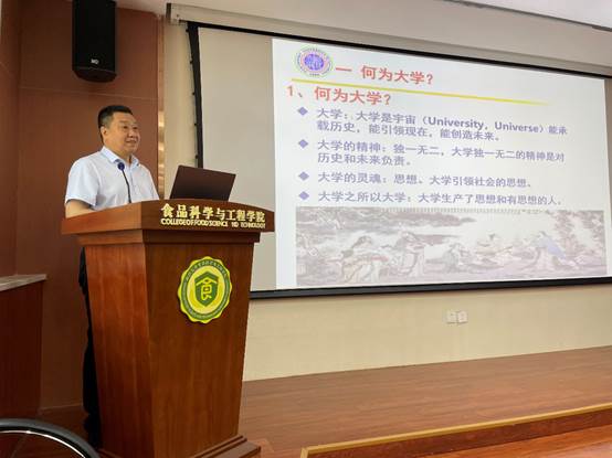 教育兴则国家兴,教育强则国家强。岳田利从大学的精神和灵魂讲起,结合中外高校办学经验,畅谈了大学的教育责任和对好大学的认识和思考。针对目前大学的现状和困境,他指出,大学要回归学术,进一步完善校院两级管理模式,让学术内行具有学术行动能力和资源的掌控能力,培养和完善能够促进学术自主发展和教学相长的学术传统,为自主的学术成长提供有效支撑的长效机制。学院作为学术综合体的实际承载体,他认为,要以学科发展为基础,建设学科创新团队,优化学院结构,完善学院管理制度,推动“学院-学科-团队制”稳步发展。在讲授中,他鼓励学生要进一步提高学术创造力、学术领导力和学术影响力,争做德智体美劳全面发展的新时代食品领域优秀人才。
