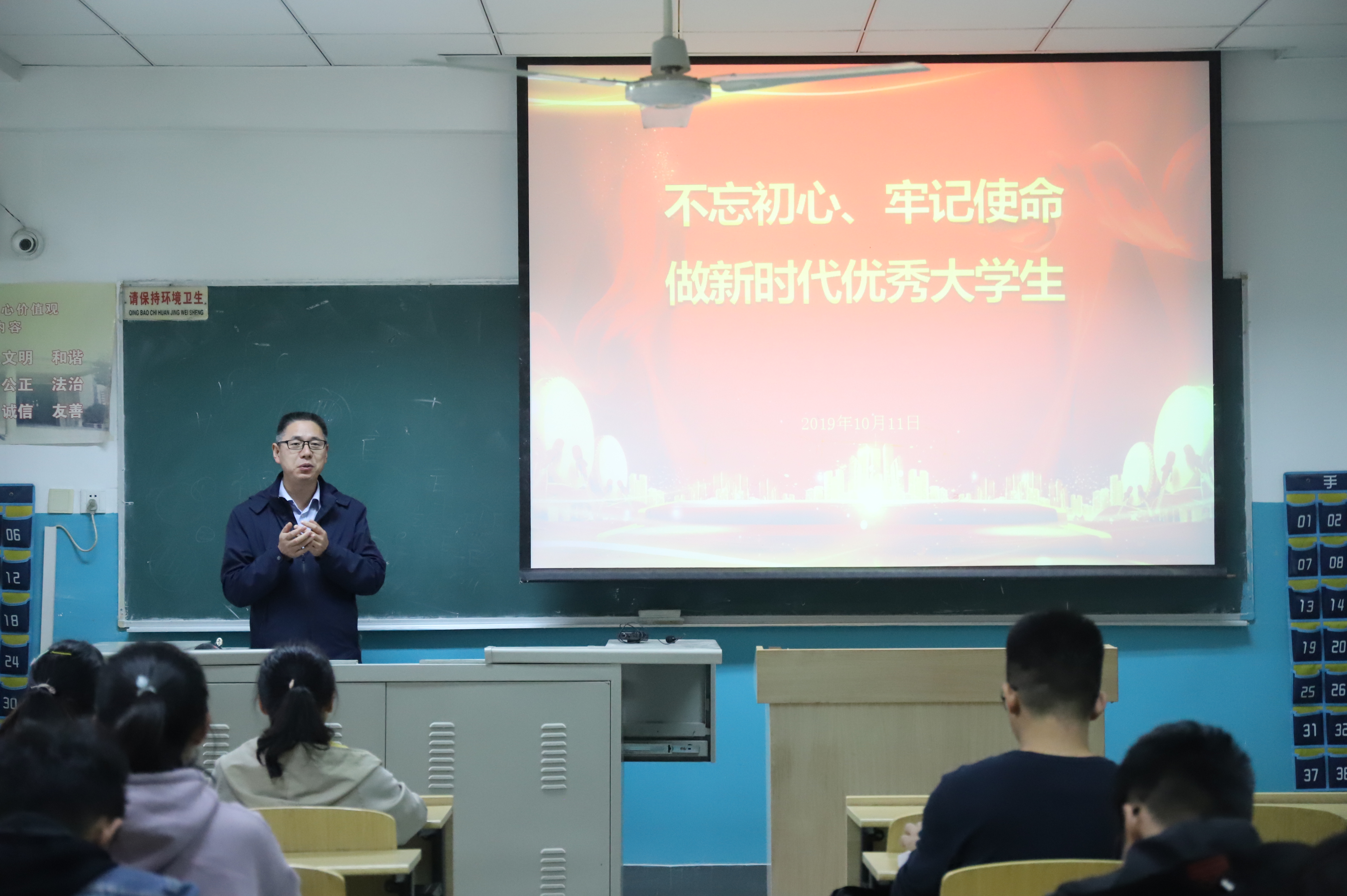 10月11日下午,学院党支部书记刘晓忠以“不忘初心、牢记使命,做新时代优秀大学生“为题,为我院学生上了一堂生动的党课。