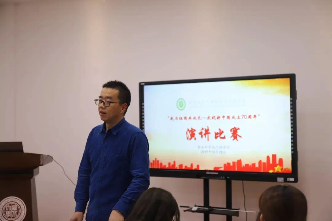 10月28日,“我与祖国共成长—庆祝新中国成立70周年”主题演讲比赛在教学8号楼5层会议室举行。学院直属党支部副书记欧建东老师、团委书记刘艺洋老师出席并担任评委,并于80余名学一起观看了比赛。