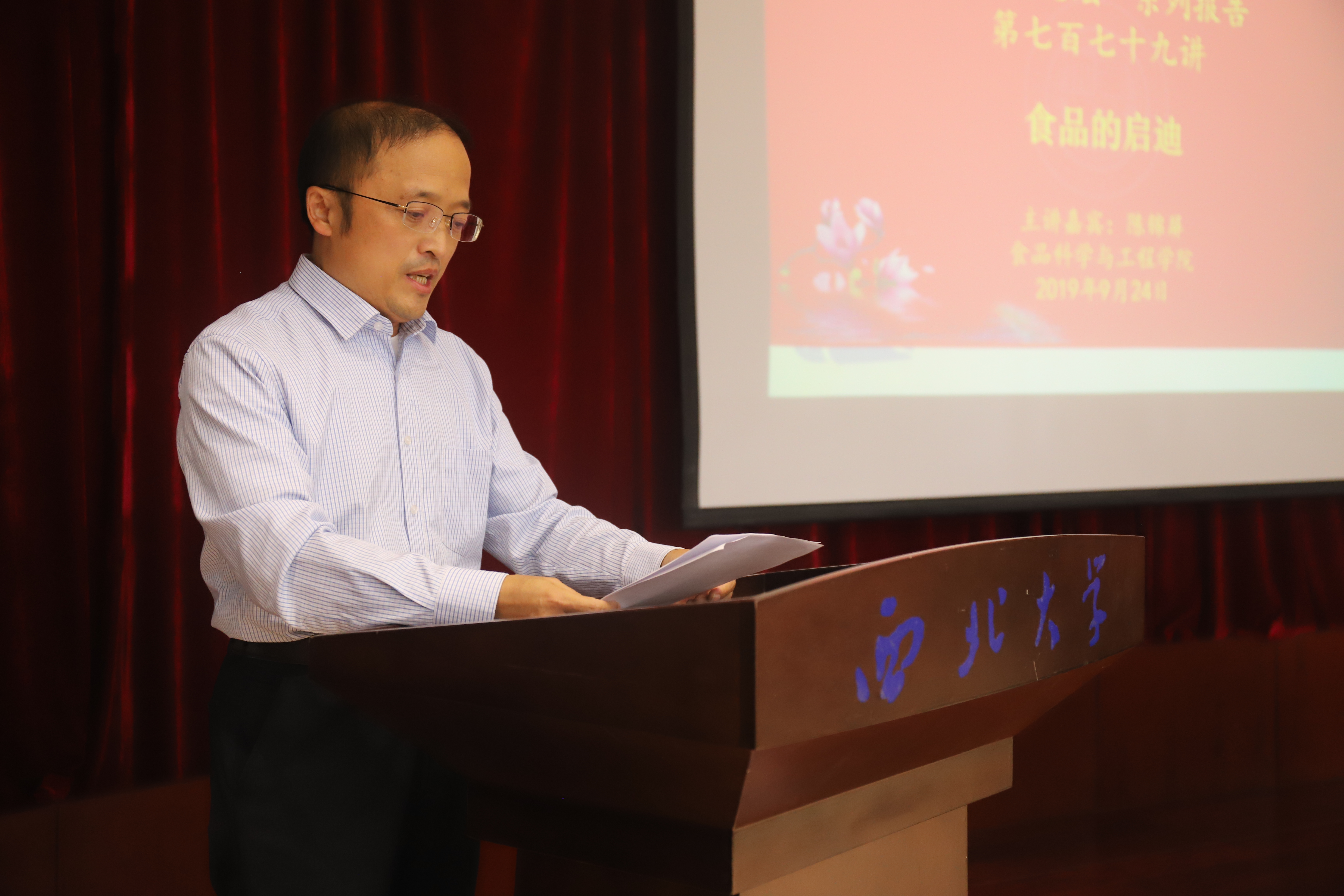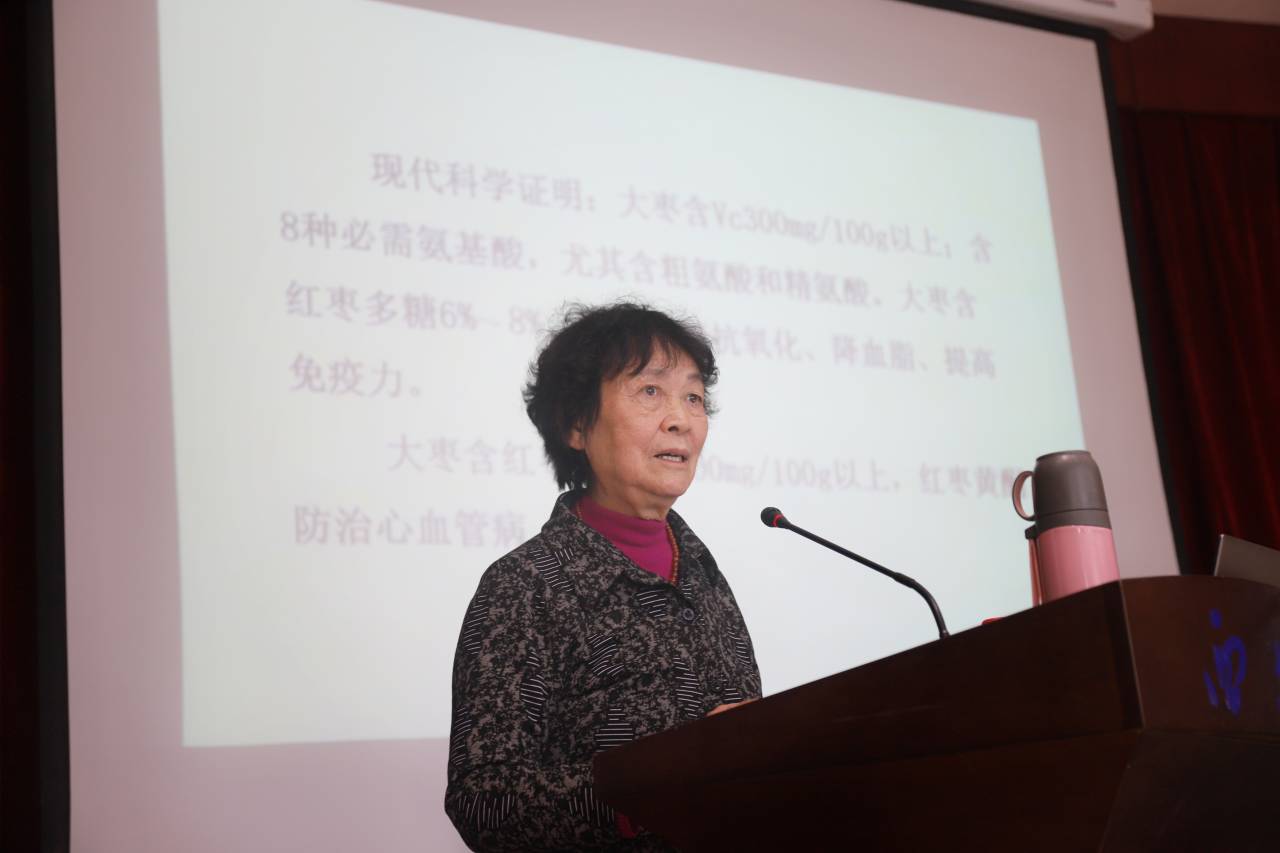 陈锦屏教授以“责任、拼搏、诚信”为关键词,讲述了她围绕果蔬干制技术,在陕西、山西、河北、新疆等多地开展红枣等产业服务,帮助各地农民增收、企业创收和政府增加财政收入,尤其是70多岁连续10年坚持到新疆多地开展技术指导,取得了显著效果。陈教授通过60余年教学科研方面克服困难、不畏艰险、持之以恒的奋斗事迹,勉励食品专业的师生,要胸怀理想,爱国爱党爱人民,用一生来坚守和热爱所学专业,并通过专业特长为人民谋取幸福,用心铺就一条广阔的学术之路。陈教授以82岁高龄,站着讲课2小时,事例丰富感人,讲授充满激情,语言精准生动,为师生们带来了一堂生动的把课程与思想政治教育相结合的示范课,引发现场阵阵掌声,师德师风感染了在场的每一位师生。