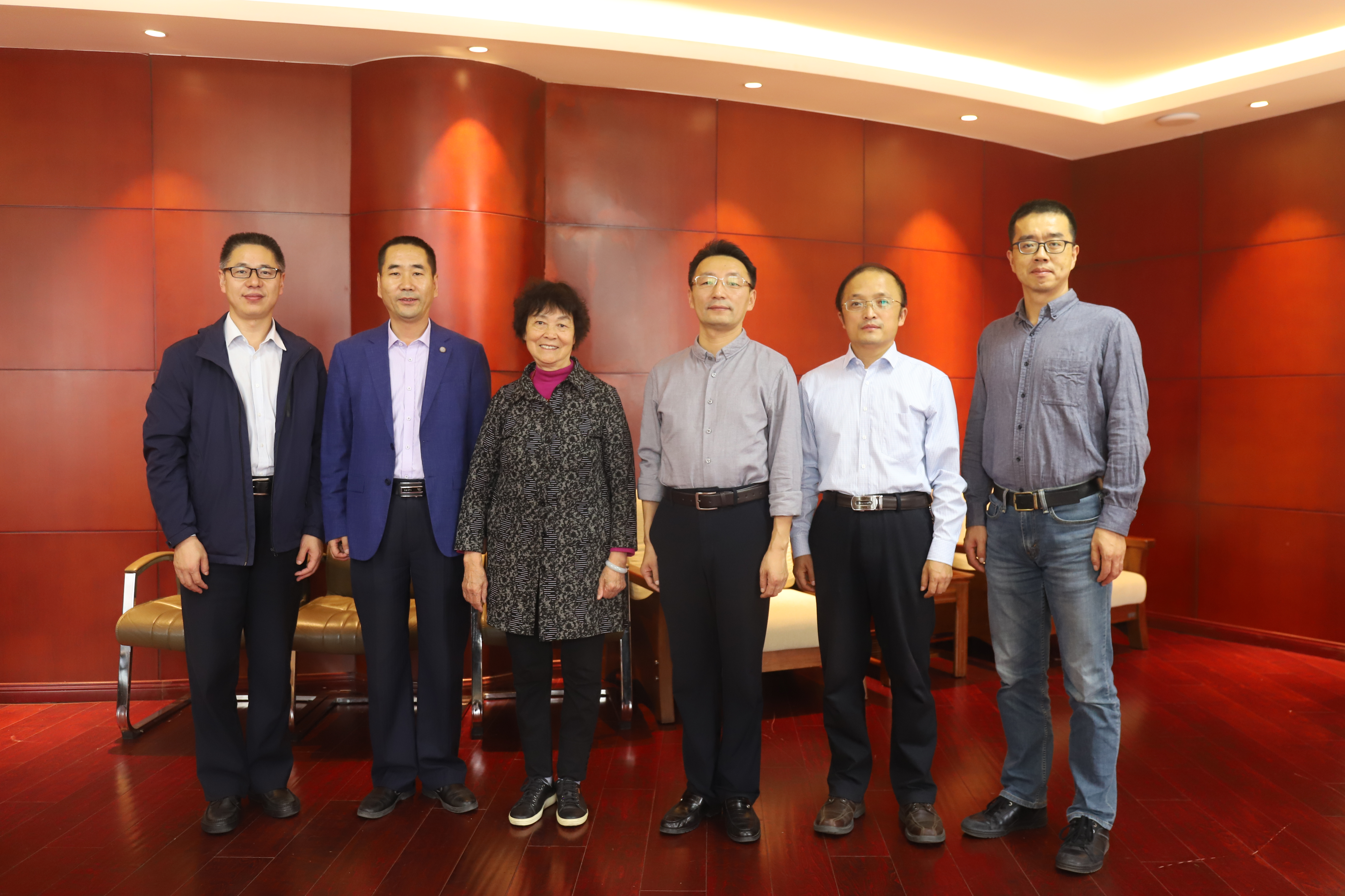 校党委副书记赵作纽、学院党政班子成员和陈锦屏教授在一起