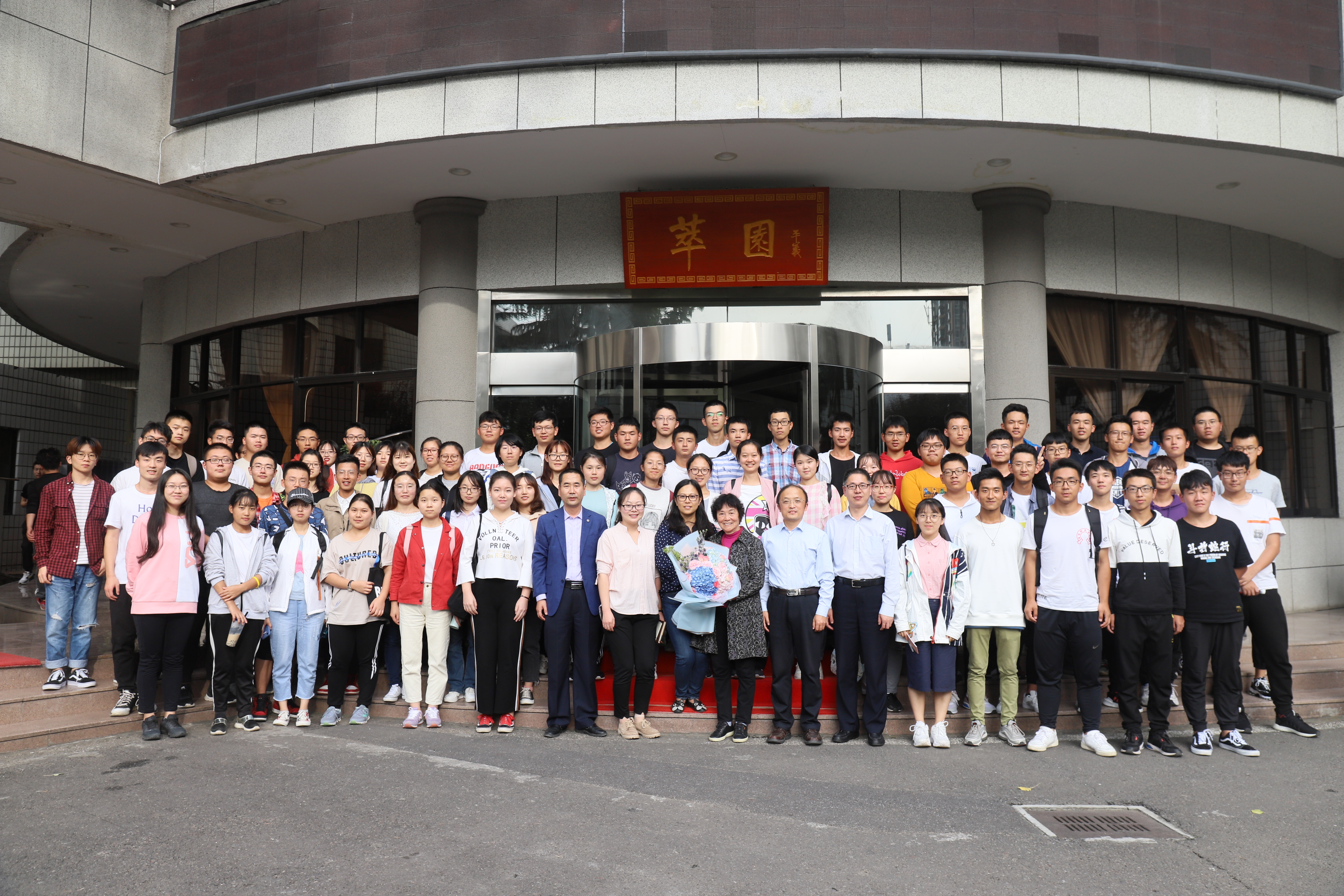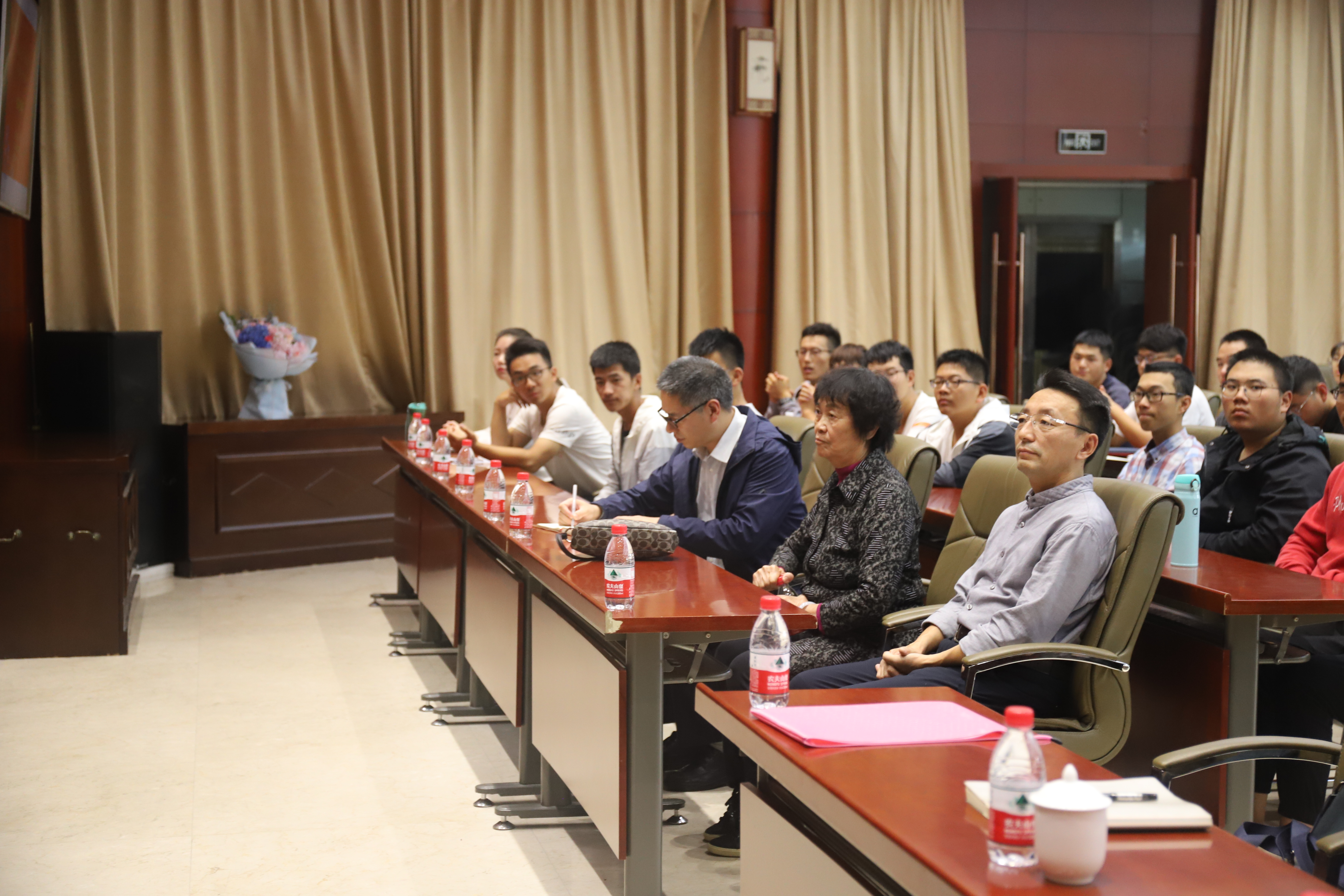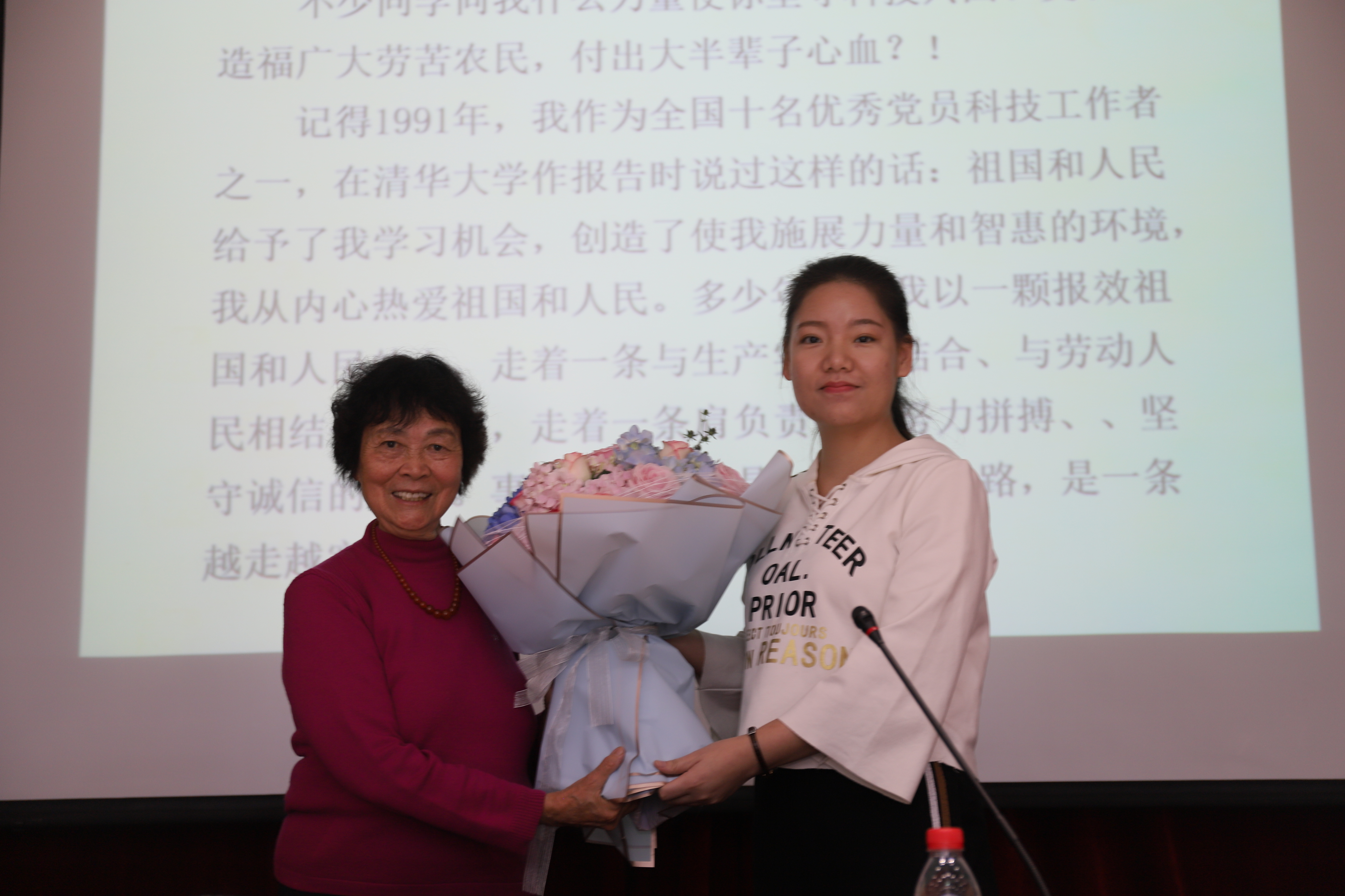 报告会后学生给陈锦屏教授献花