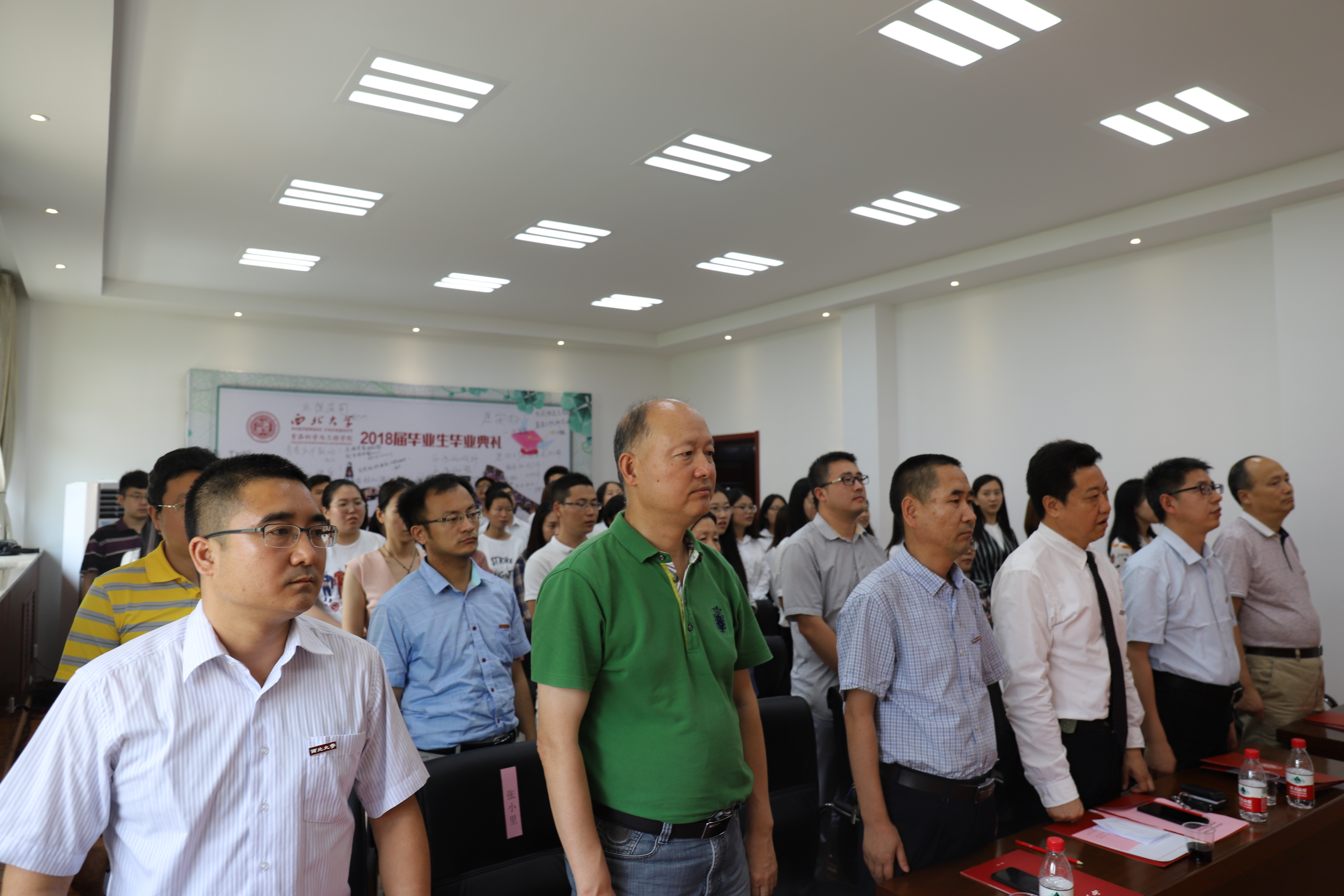 全体师生共同观看了学院精心制作的2018届毕业视频。绿树成荫,错落有致的西大校园,老师们亲切的毕业祝福,四年校园生活的点点滴滴无不感动着即将毕业离校的2018届学生。