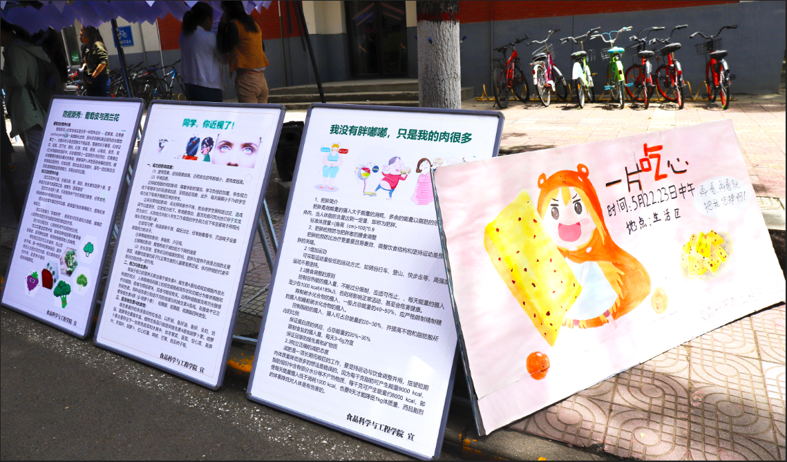 5月21-25日,学院在太白校区生活区开展了“一片吃心——食品与健康”主题宣传活动,通过丰富精彩的展板展示及趣味互动答题等形式,向我校师生普及了食品营养科普与食品安全知识。师生们反响热烈,参与踊跃,同学们吃着自制的曲奇饼干等美味食品,讨论着展板上的营养知识,活动现场充满了热情洋溢的欢声笑语。