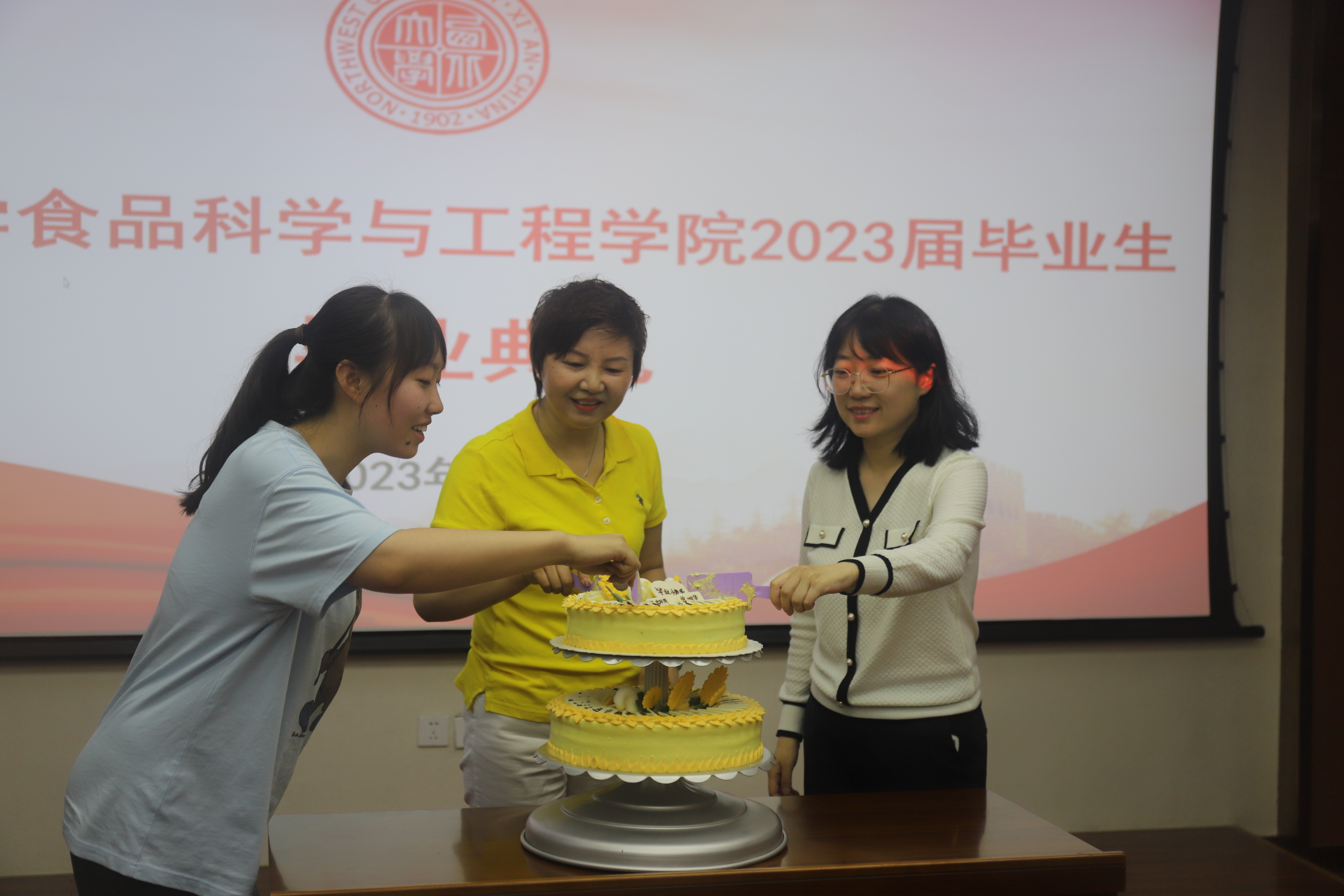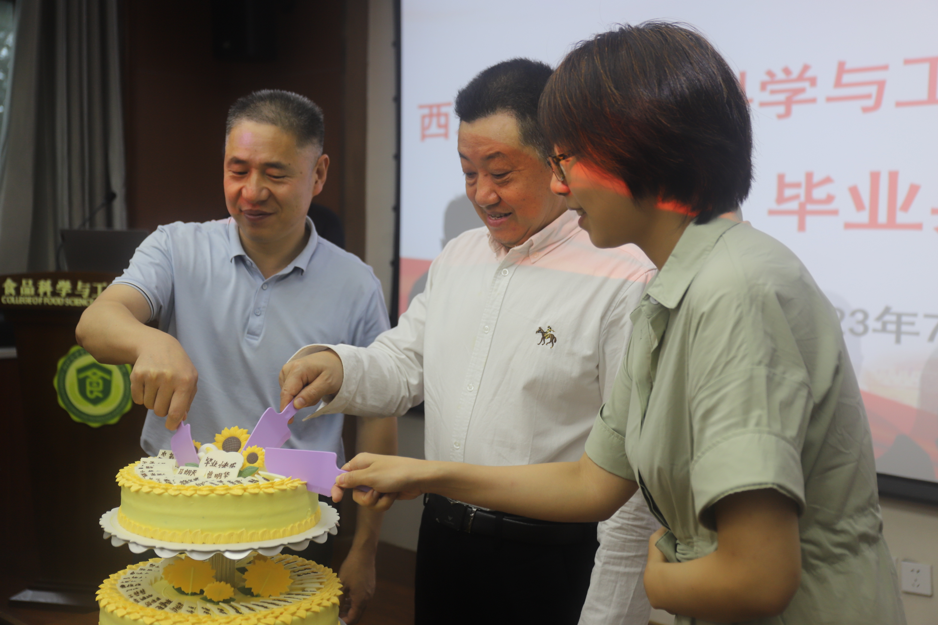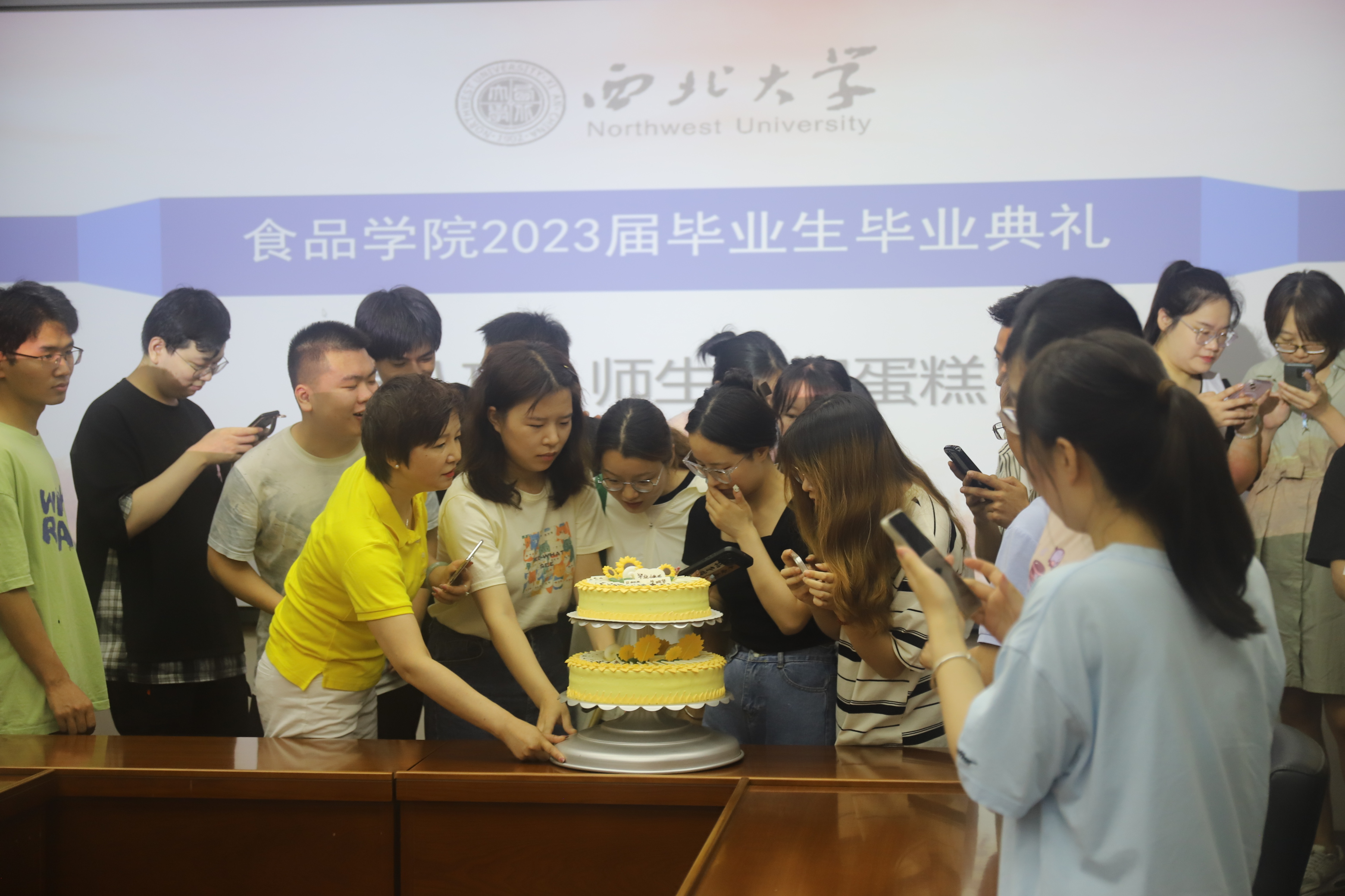 典礼结束后,师生一同分享写有全体毕业生姓名的蛋糕,祝贺全体毕业生走上新的人生之路,祝愿大家砥砺奋进,坚守初心、以梦为马、不负韶华!