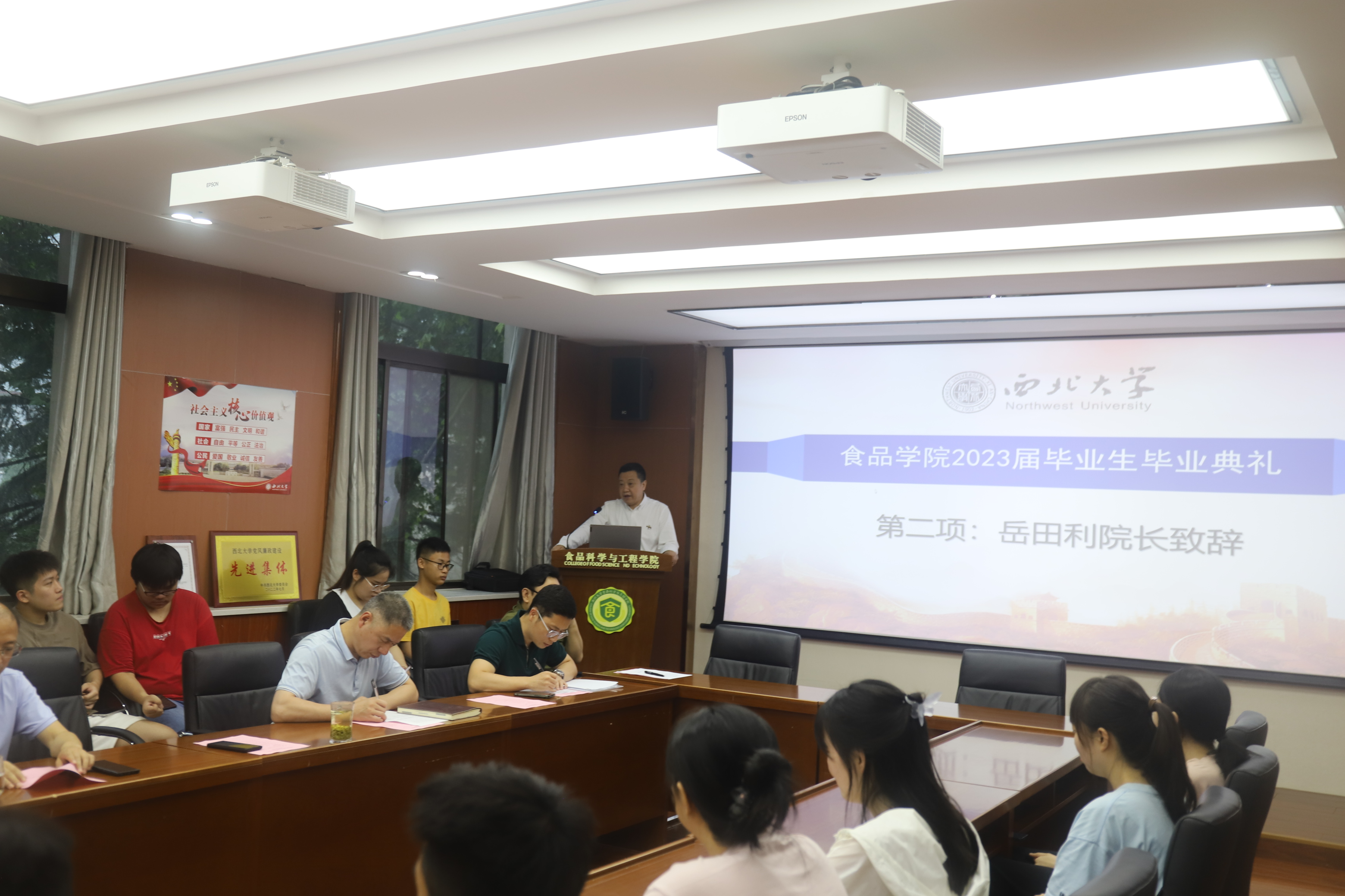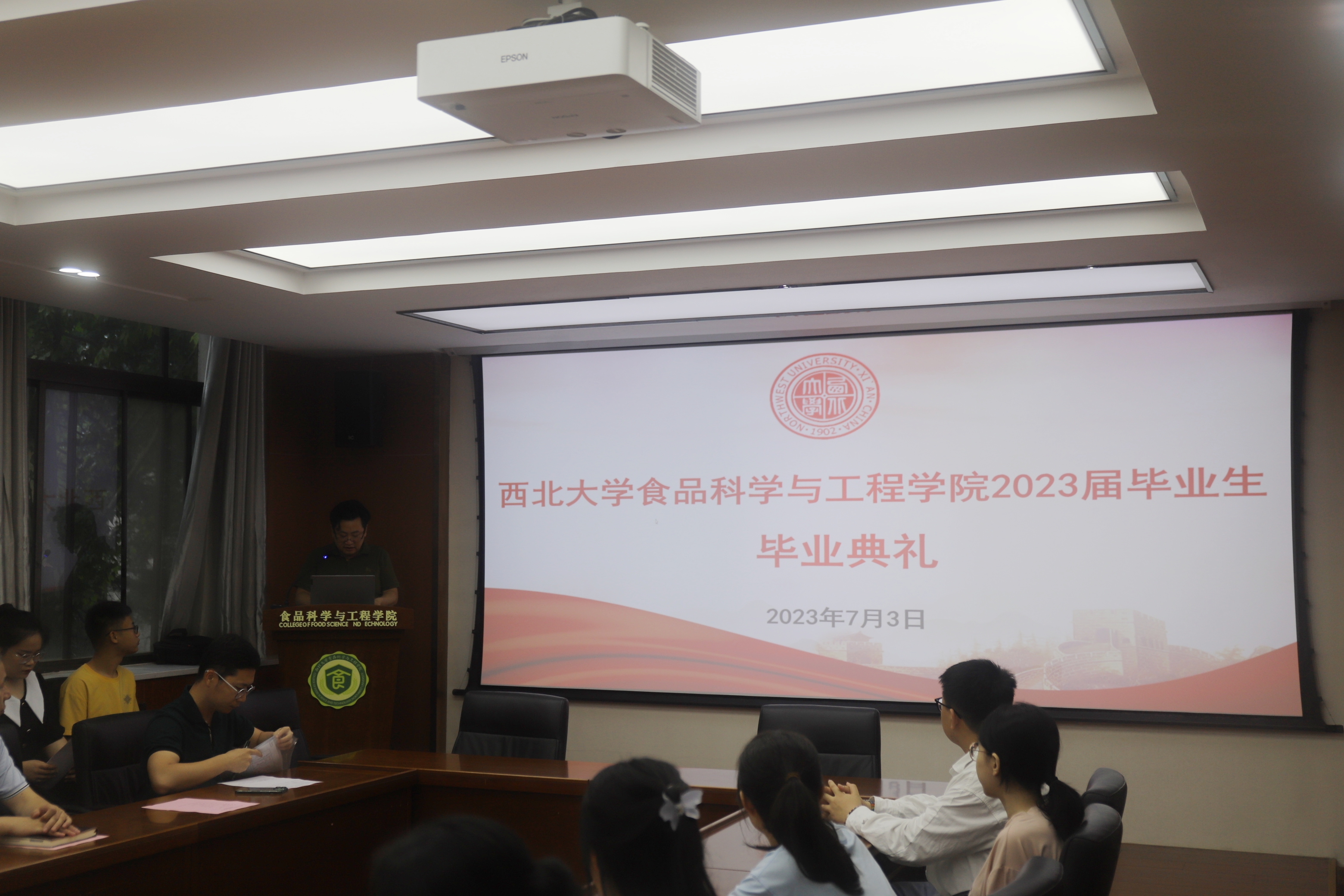 毕业骊歌起,再踏新征程。7月3日上午,食品学院2023届毕业生毕业典礼在学院会议室举行。学院党委书记刘晓忠、院长岳田利、副院长曹炜,学院袁亚宏教授、白武双副教授、毕业班班主任郭森、毕业班辅导员及2023届毕业生出席毕业典礼。典礼由学院党委副书记张霄主持。