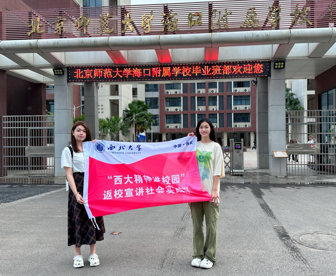三支实践队分别走进北京师范大学海口附属学校、江苏省沭阳高级中学和山东省平度第一中学开展返校宣讲活动。实践团队向母校师生讲述了西大精神,分享了在西北大学的丰富校园生活以及学习经历,并从学校历史、地理位置、师资力量等方面详细介绍西北大学,激发高中学子对大学生活的向往。