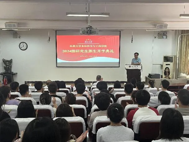 8月26日,学院分别召开2024级本科生、研究生新生开学典礼,学院党政班子成员、2024级全体新生参加活动。学院院长寄语大家努力成为具备创新思维和实践能力的食品科学领域专业人才。学院党委负责人寄语新生,要珍惜大学时光,保持乐观心态,深刻体悟大学教育的真谛,增强社会责任感,在中华民族伟大复兴的征程中勇于担当。教师代表分享了杰出校友的成长故事,教育引导新生要珍惜大学时光,明确人生规划,打牢基础学科根基。老生代表鼓励新生抓住机会、善用资源、发挥主观能动性、享受丰富多彩的校园生活。新生代表表示将珍惜学习机会,努力提升研究能力和创新思维,为学术和职业发展打下坚实基础。