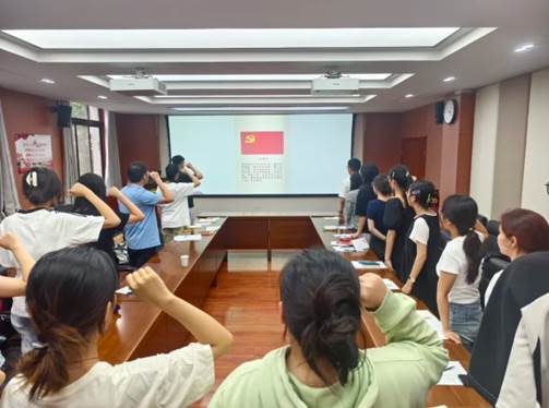 活动最后,全体党员庄严肃立,面向党旗,高举右拳,重温入党誓词。“我志愿加入中国共产党……”铿锵有力的誓言响彻会议室,将情感共鸣转化为行动自觉,让每一位党员再次接受了深刻的党性教育和灵魂洗礼。